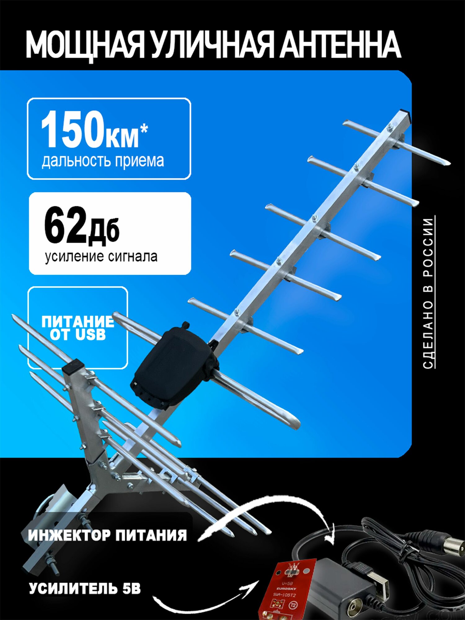 Отзывы на Антенна для цифрового тв уличная, для телевизора, МИР-12-А2, с усилителем (5В), для ТВ + инжектор питания