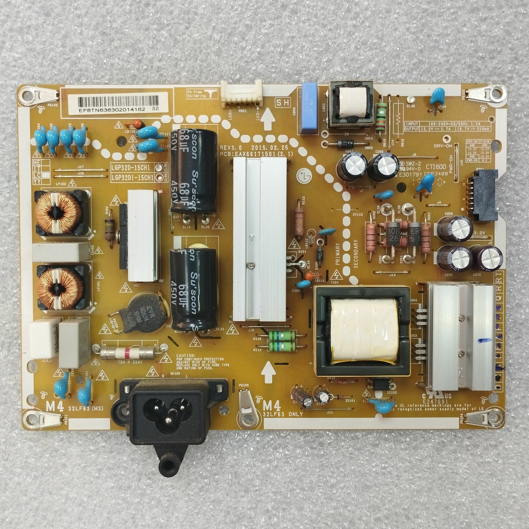 Плата блока питания EAX66171501 (2.1) LGP32D-15CH1 для телевизора LG 32LF550U, 32LF560U, 32LF562U, 32LF564U и др. информация: