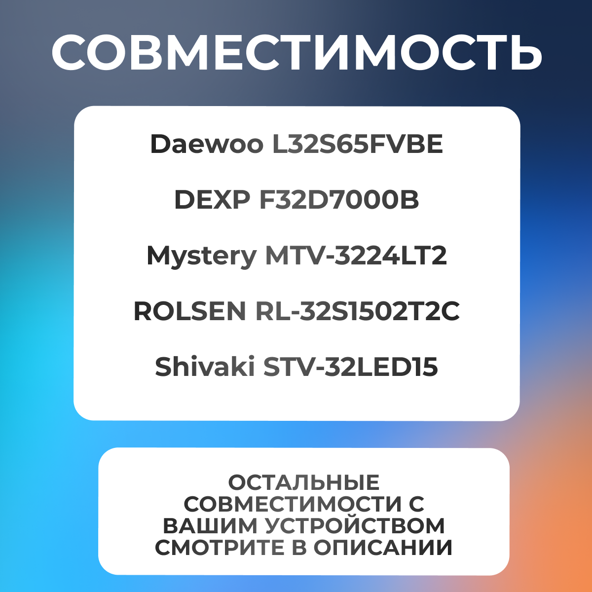 0 отзывов, средняя оценка 0. Чтобы купить «Подсветка для MYSTERY MTV-3224LT2, Philips LD32E12M, ROLSEN RL-32S1502T2C и др / 32" 3V 7 led (комплект 3 шт) 598mm» по лучшей цене мы сканируем авито, алиэкспресс, маркет, озон, савеловский, плеер, горбушку, беру, официальные сайты и находим минимальную. Администрация не несет ответсвенность актуальность цен на Подсветка для MYSTERY MTV-3224LT2, Philips LD32E12M, ROLSEN RL-32S1502T2C и др / 32" 3V 7 led (комплект 3 шт) 598mm, более подробно узнавайте на сайте магазина.
