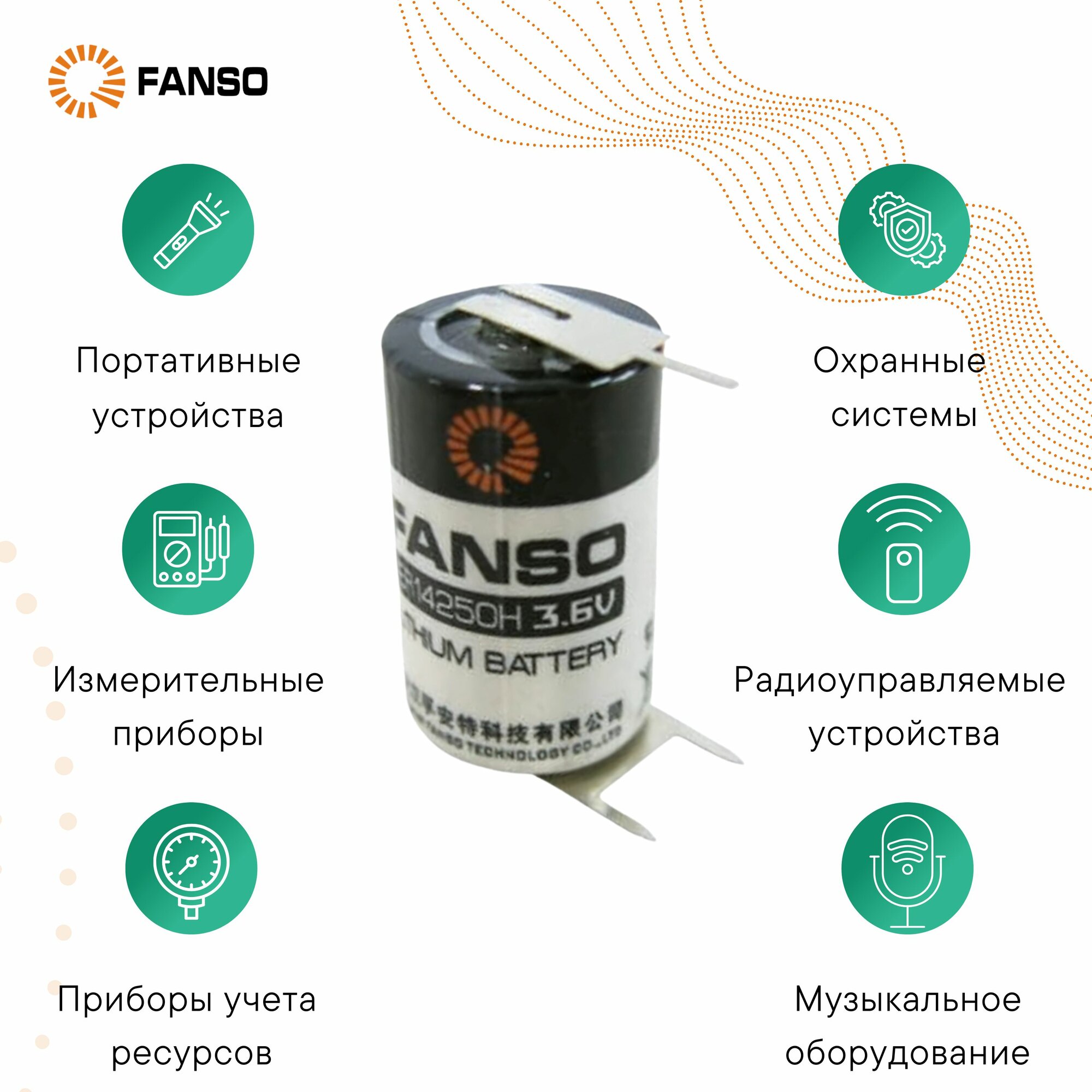 Отзывы на FANSO ER14250H/3PF Литиевая батарейка цилиндрическая для приборов, счетчиков, автомобилей и GPS, тип 1/2AA c тремя выводами под пайку, Li-SOCl2