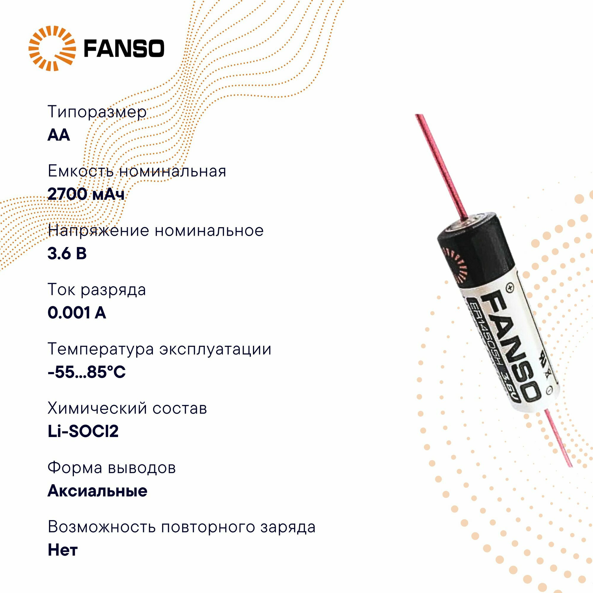 FANSO ER14505H/P Литиевая батарейка для пайки на плату AA, 1 шт. информация: