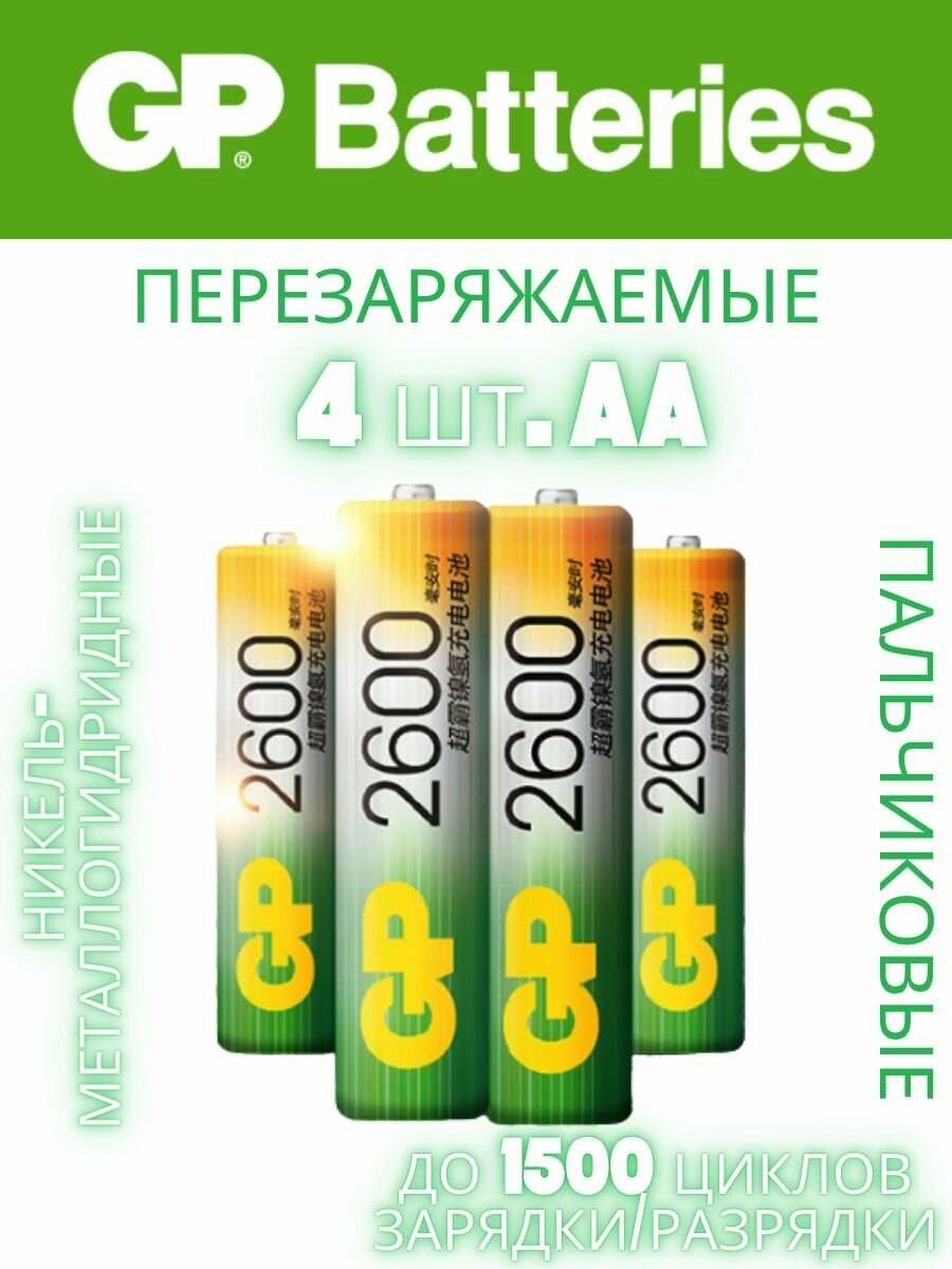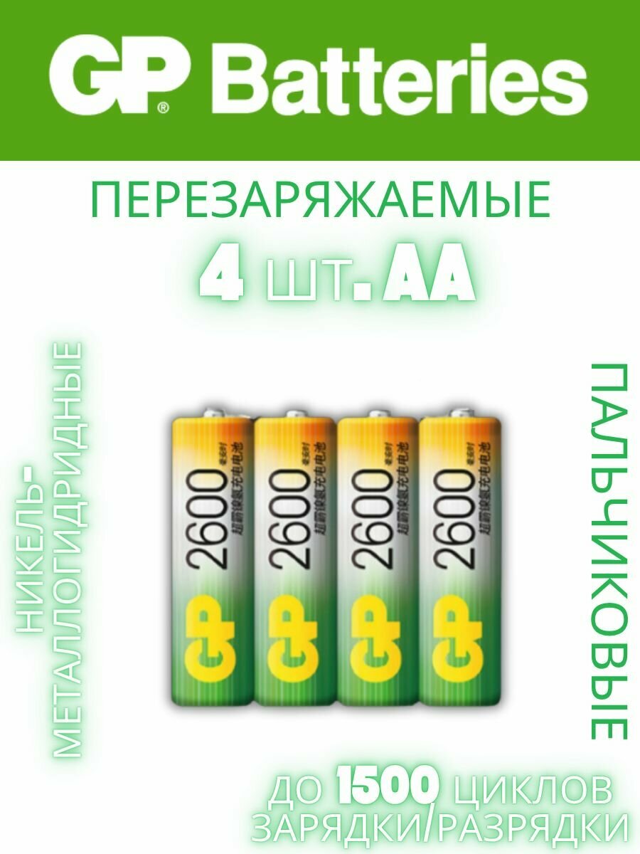 АA Аккумуляторная батарейка GP 2600, перезаряжаемая / 4 шт. 2600мAч информация: