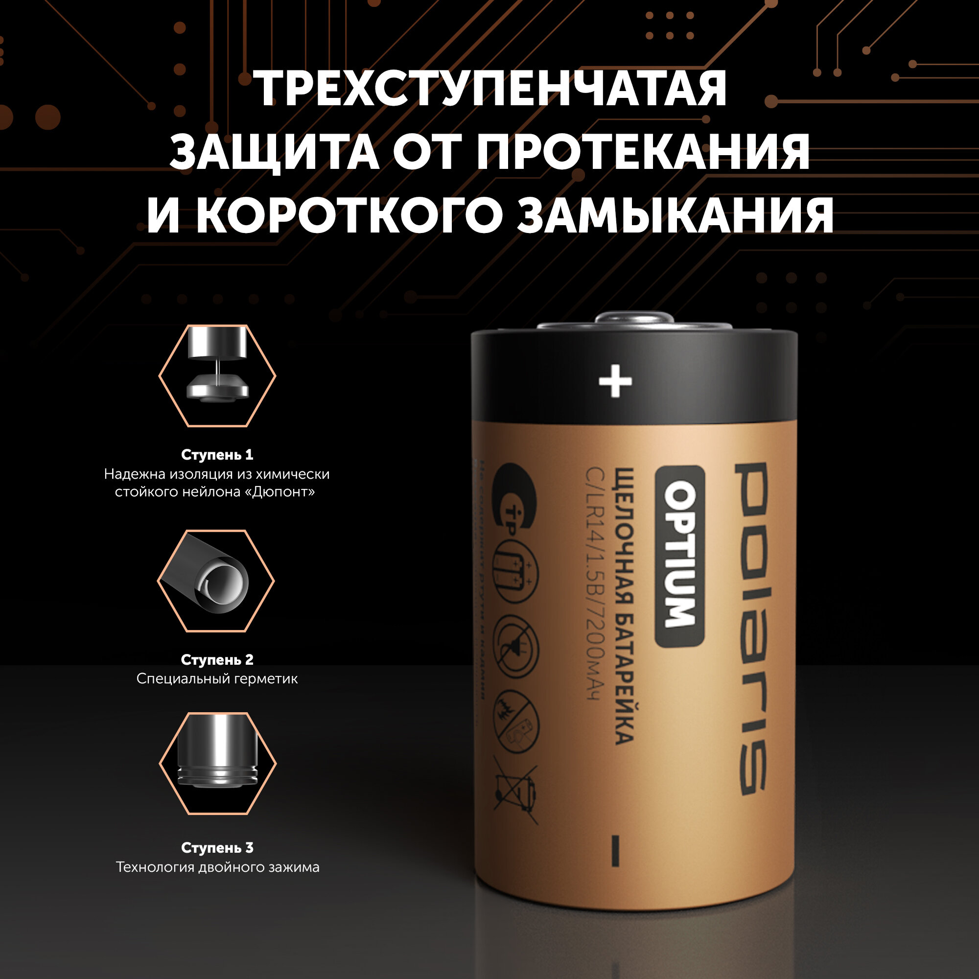 Батарейки щелочные (алкалиновые) Polaris PB LR14 (С) (2шт) OPTIUM 7200 mAh информация: