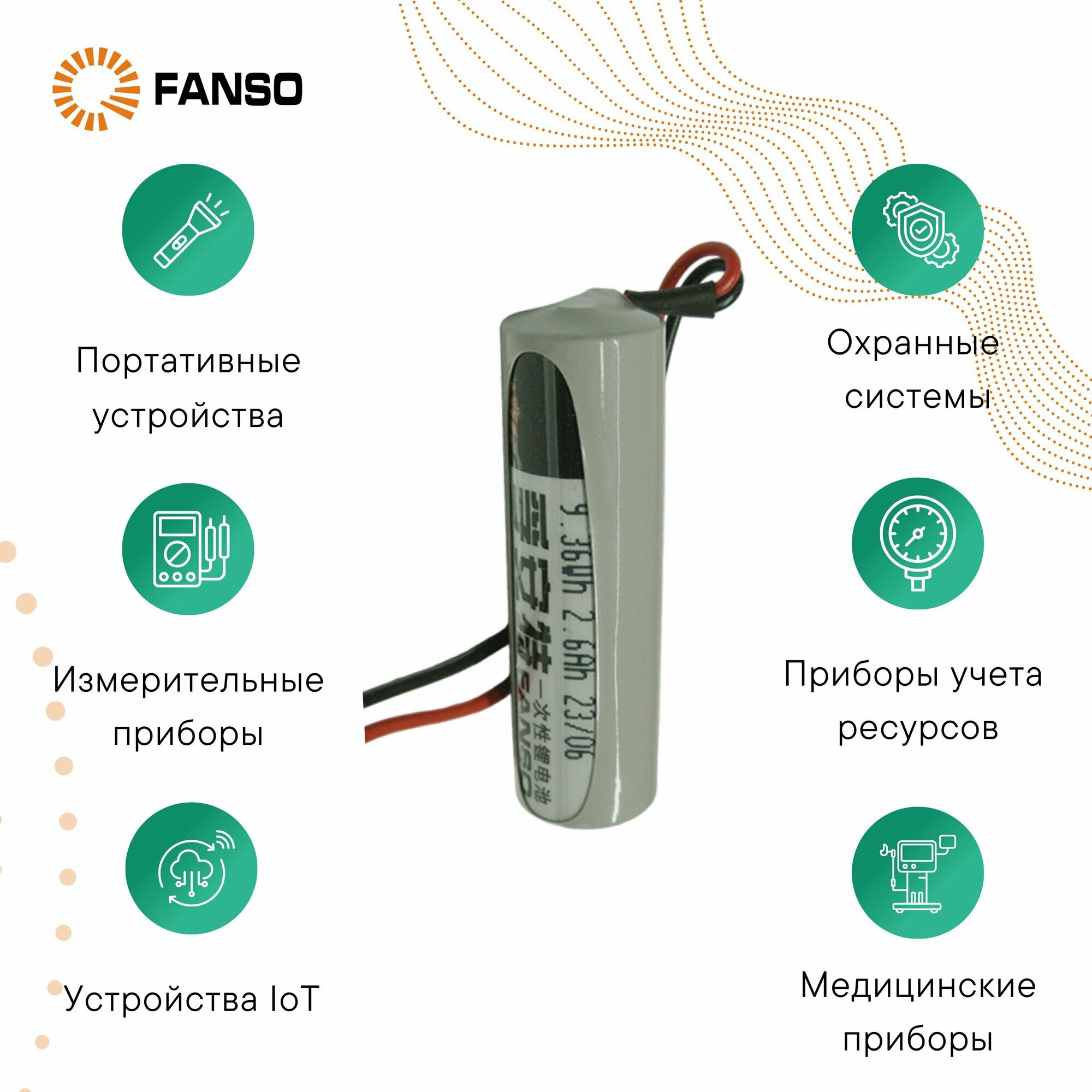 FANSO ER14505H-LD Литиевая батарейка с проводами AA, 1 шт. информация: