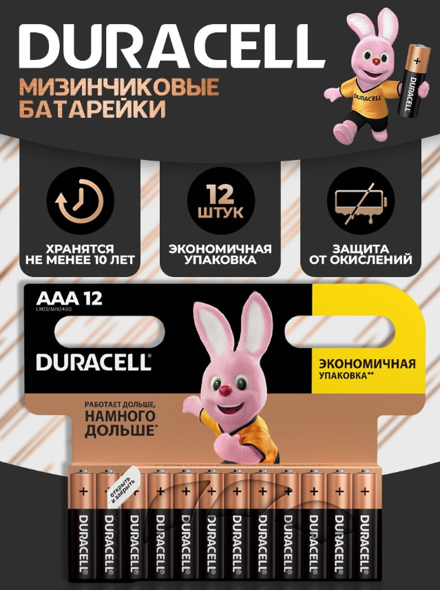 Отзывы на Duracell Батарейки щелочные (алкалиновые) тип AAA, 1,5В, блистер 12шт, мизинчиковые