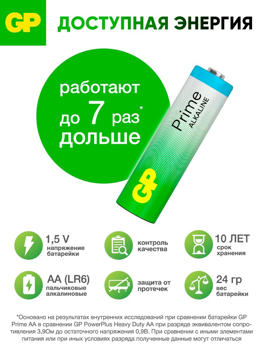 GP Батарейки АА пальчиковые алкалиновые Prime Alkaline, набор 60 шт информация: