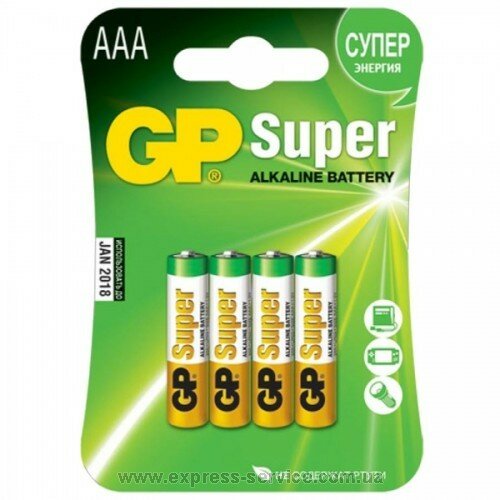 Батарейки GP Super щелочные (алкалиновые), тип AAA, 1.5V, 4шт. (Мизинчиковые)