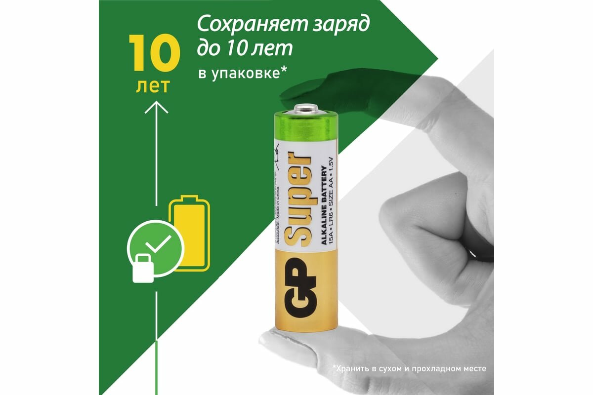 10 цен на Алкалиновые батарейки GP Super Alkaline G-Tech АA, набор 10 шт. 8+2 GP 15A8/2-CR10