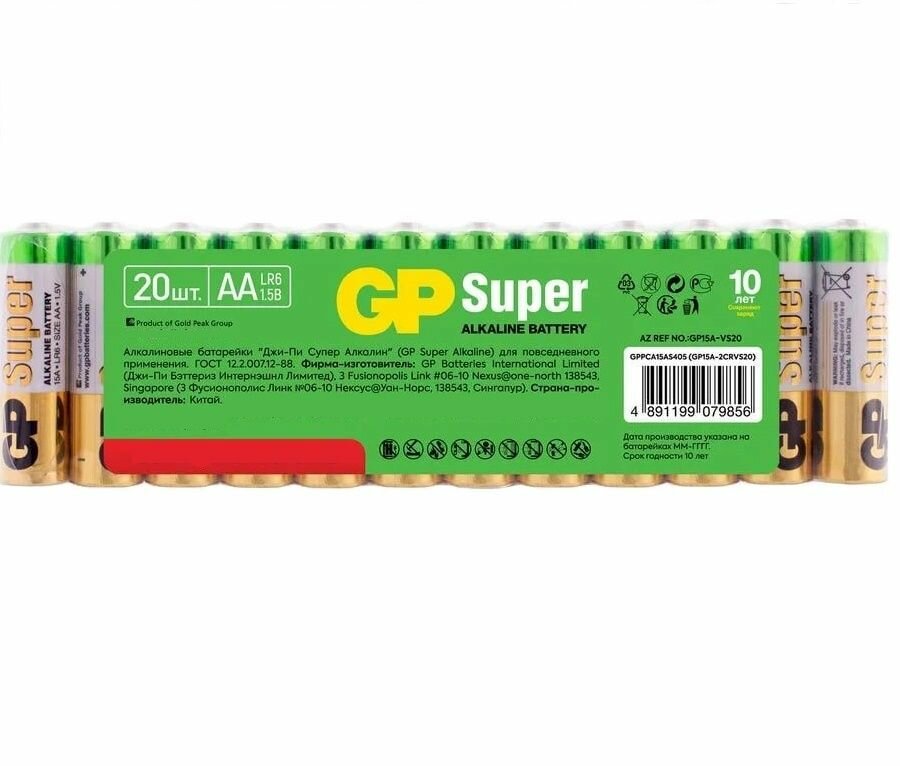 Батарейка алкалиновая Super Alkaline 15А АA - 20 шт. в пленке, GP 1208 (20 шт.) информация: