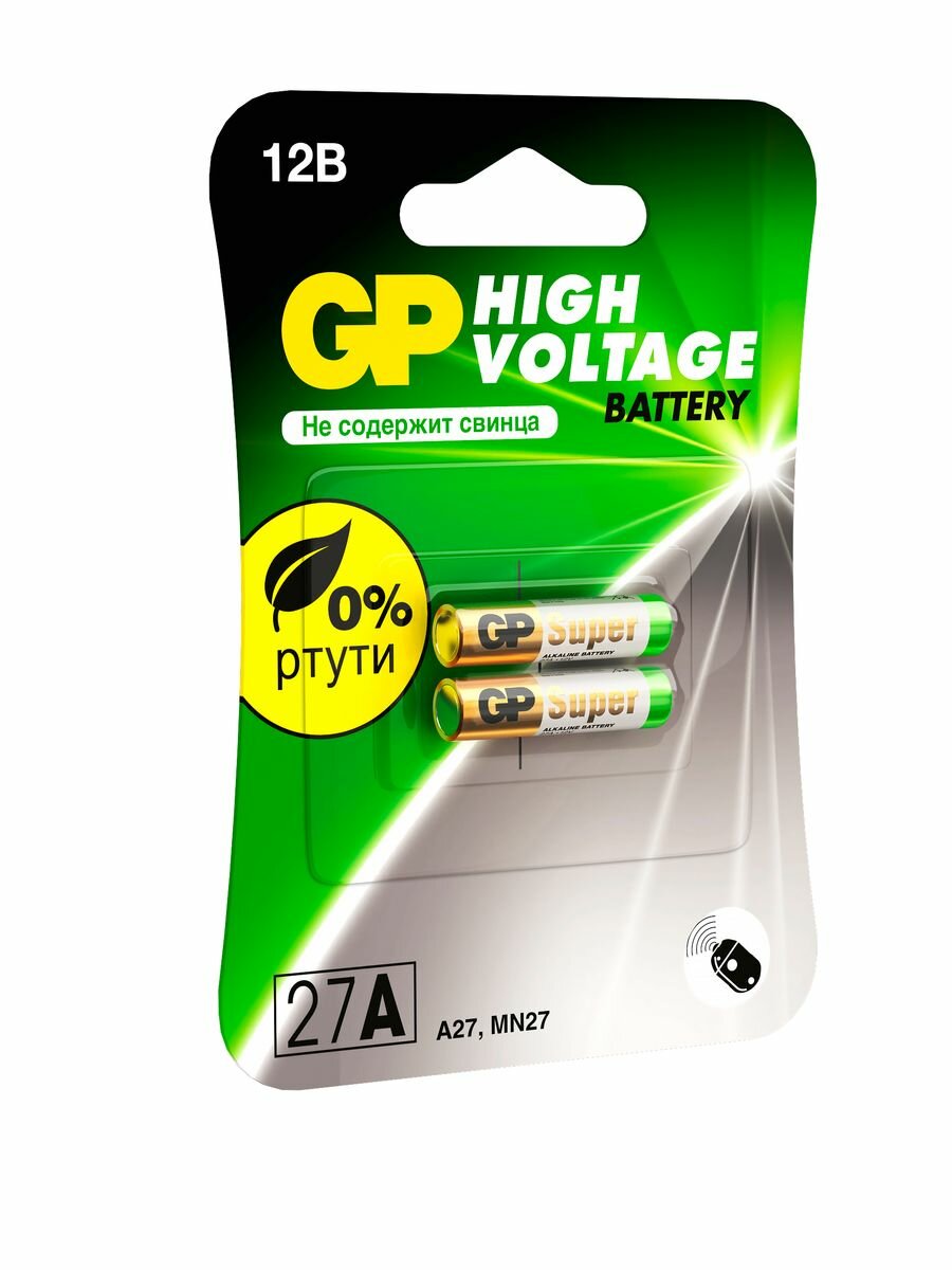 10 цен на GP Батарейки алкалиновые высоковольтные А27 ( 27А, MN27, V27A ) 12V, набор 2 шт