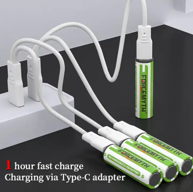 Аккумуляторные батарейки AAA 1,5V 600 mWh( 2 шт.) с зарядкой через порт type-c. 615 ₽