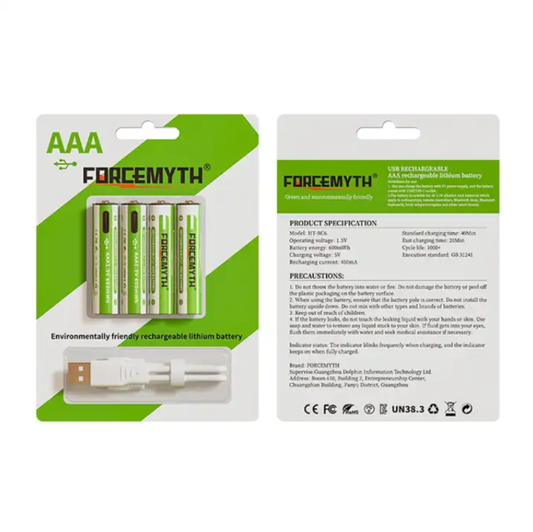 Аккумуляторные батарейки AAA 1,5V 600 mWh( 4 шт.) с USB кабелем. информация: