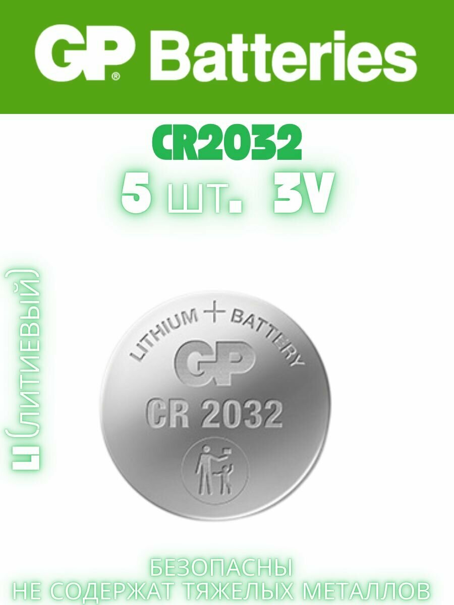 Батарейки таблетки литиевые GP Lithium (CR2032) 3V, 5 шт информация: