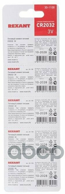 Отзывы на Rexant Rexant Элемент питания литиевый CR2032 3В 220мА. ч (блист.5шт) Rexant 30-1108