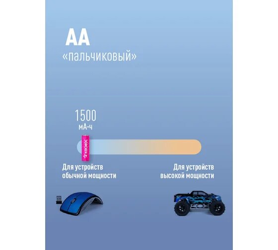 Отзывы на Аккумуляторные батарейки АА / R6 пальчиковые 1900 мАч 2 шт Космос