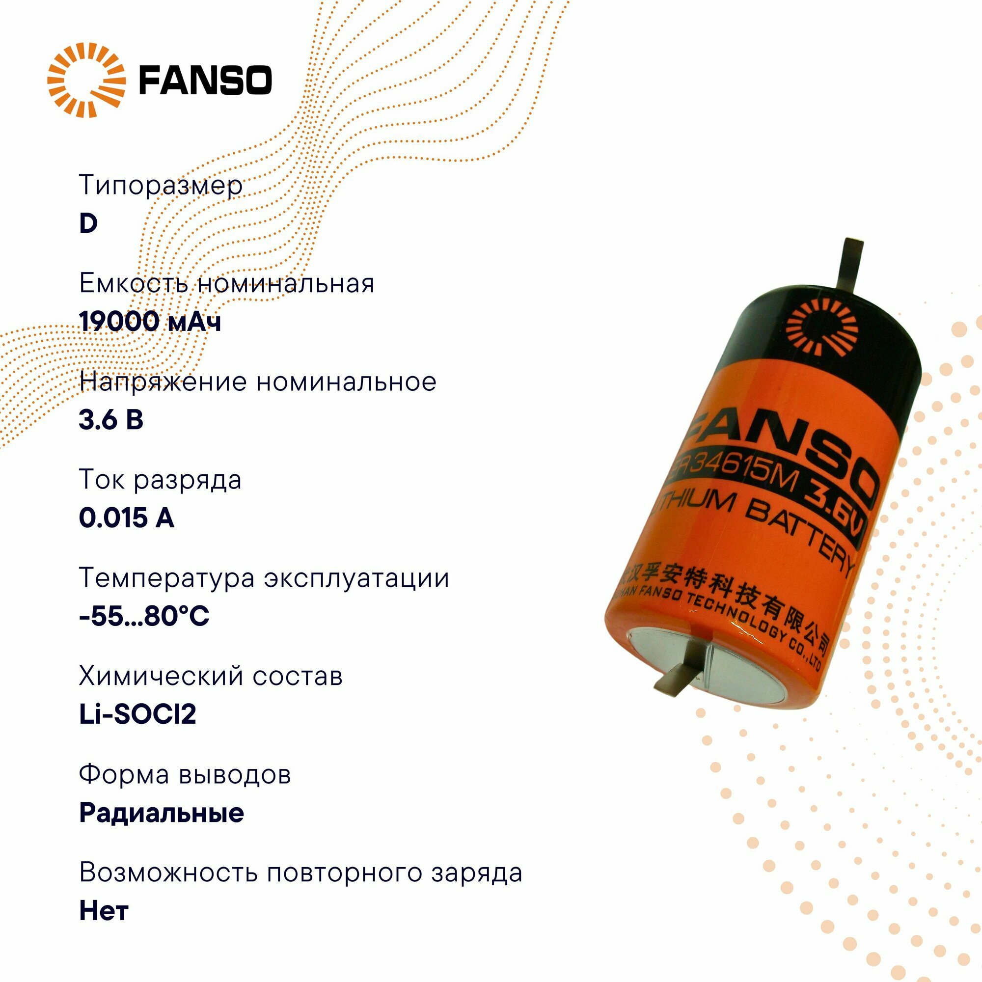 FANSO ER34615M/T Литиевая батарейка для пайки на плату D, 1 шт. информация: