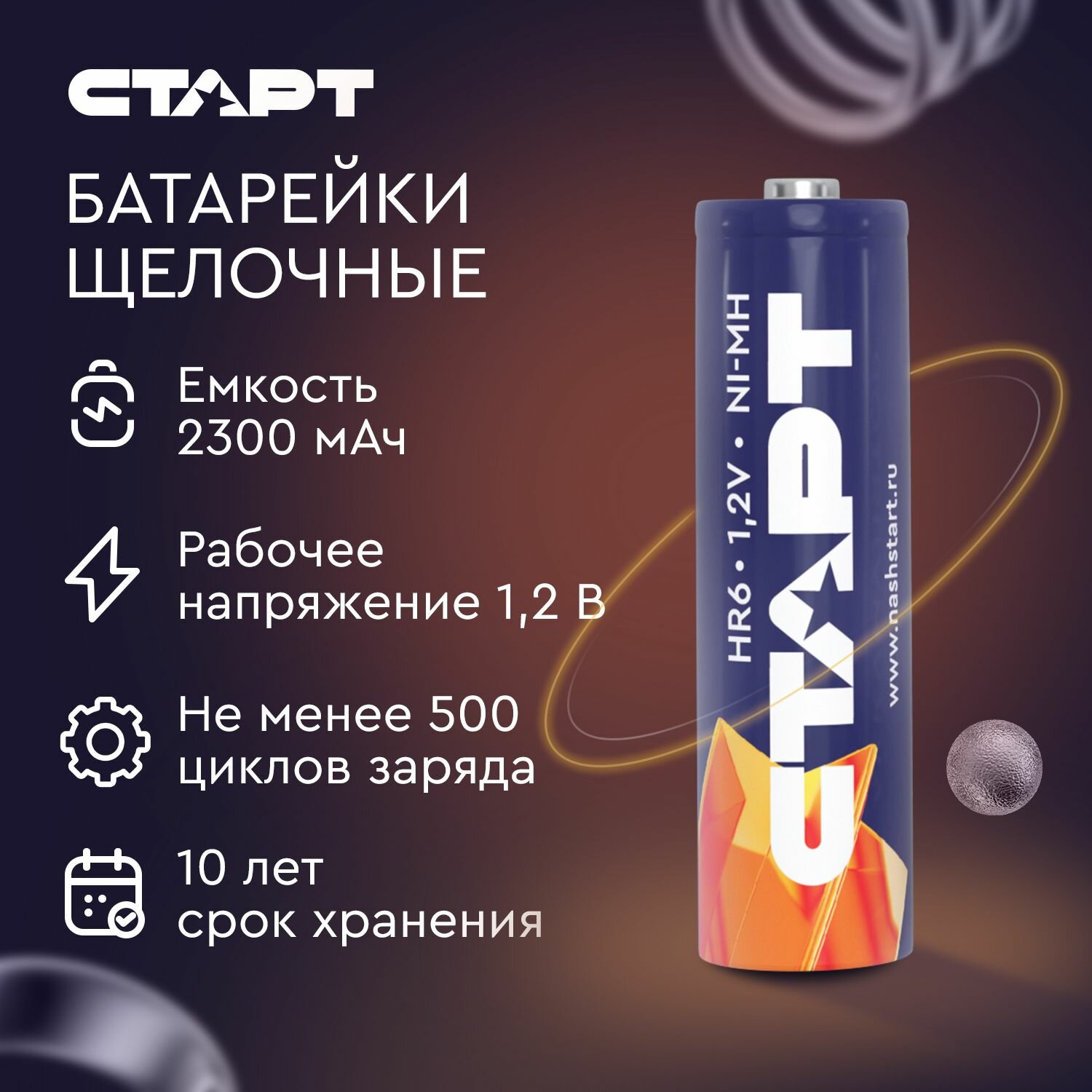 Аккумуляторные батарейки АА (HR6) СТАРТ, 1800 мАч, 1,2 В, 2 штуки 429 ₽