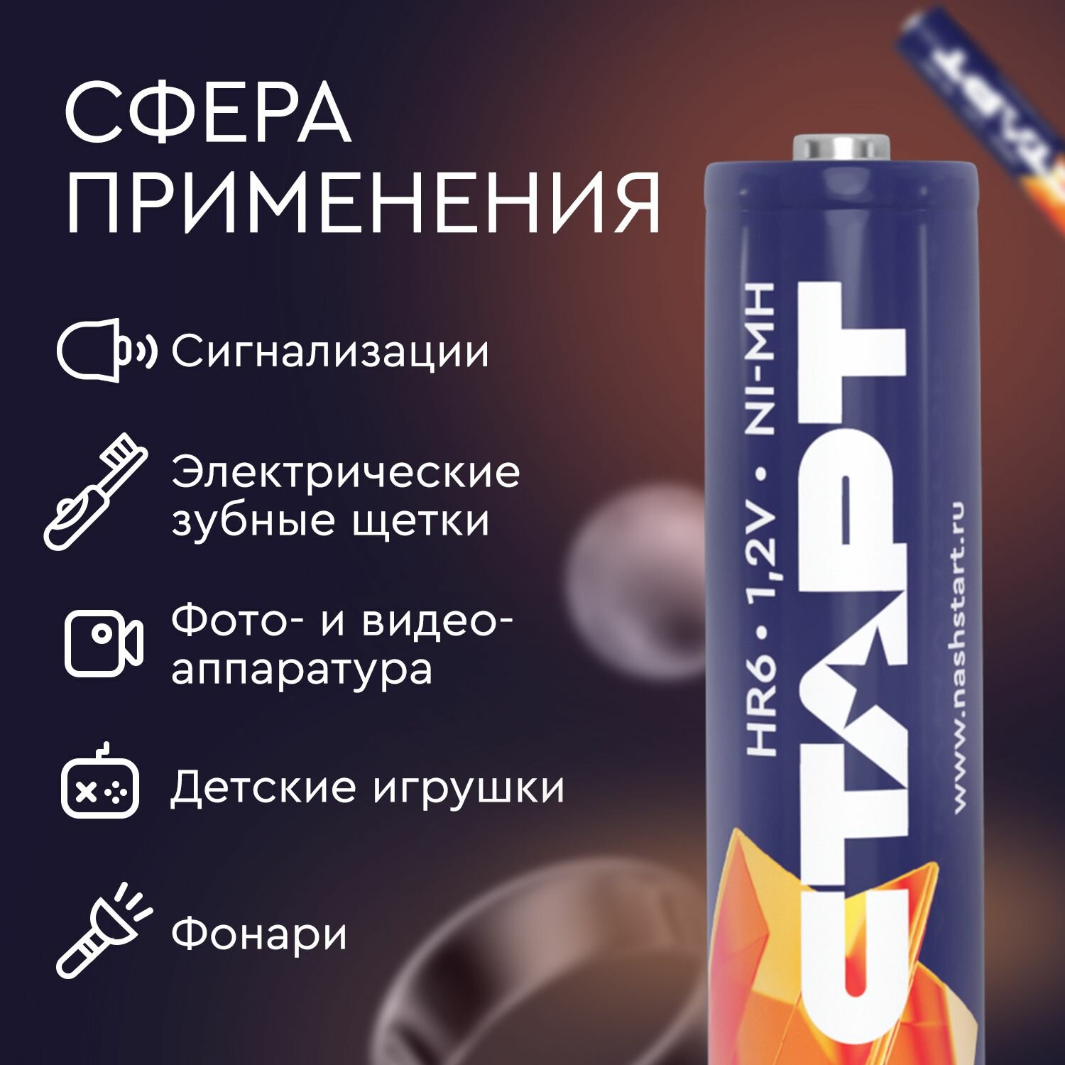 Аккумуляторные батарейки АА (HR6) СТАРТ, 1800 мАч, 1,2 В, 2 штуки информация: