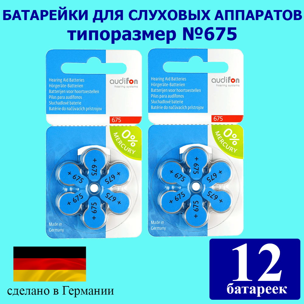 Батарейки для слуховых аппаратов Audifon 675, 12 шт информация: