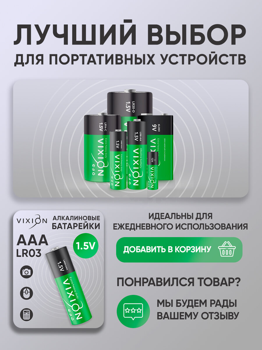 Батарейка AAA Vixion алкалиновая LR03 (пленка) 4 шт информация: