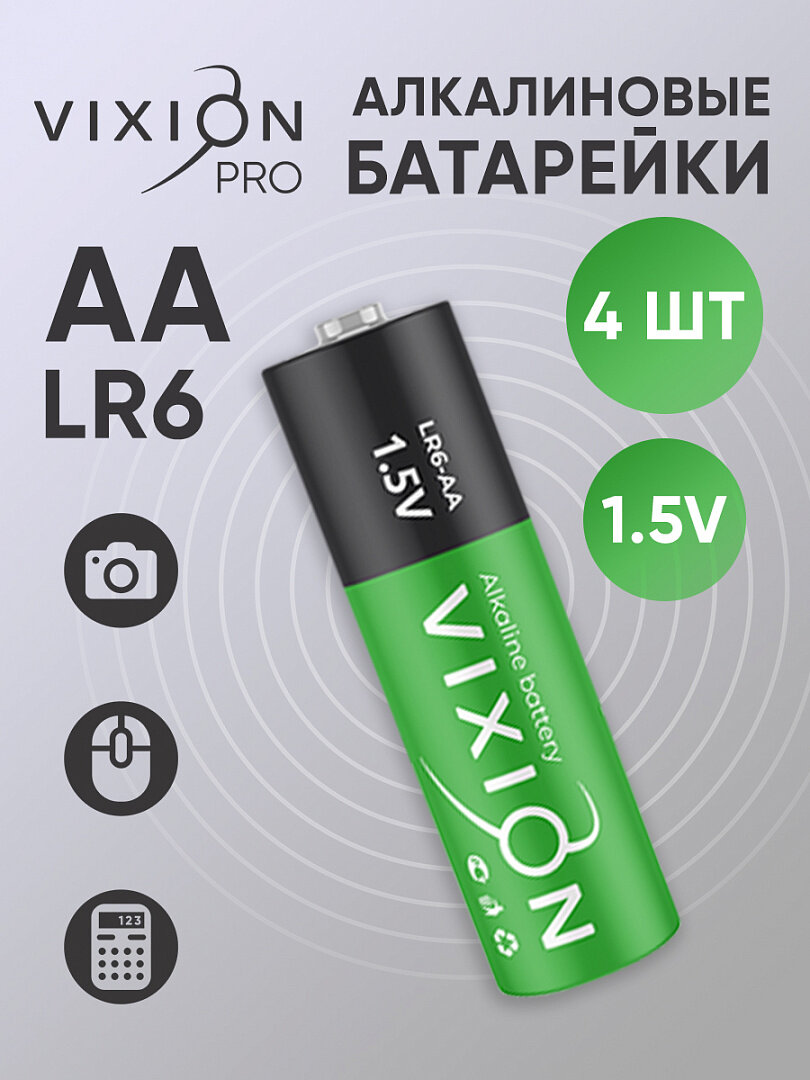 10 цен на Батарейка Vixion алкалиновая LR6 - AA (пленка) 4 шт