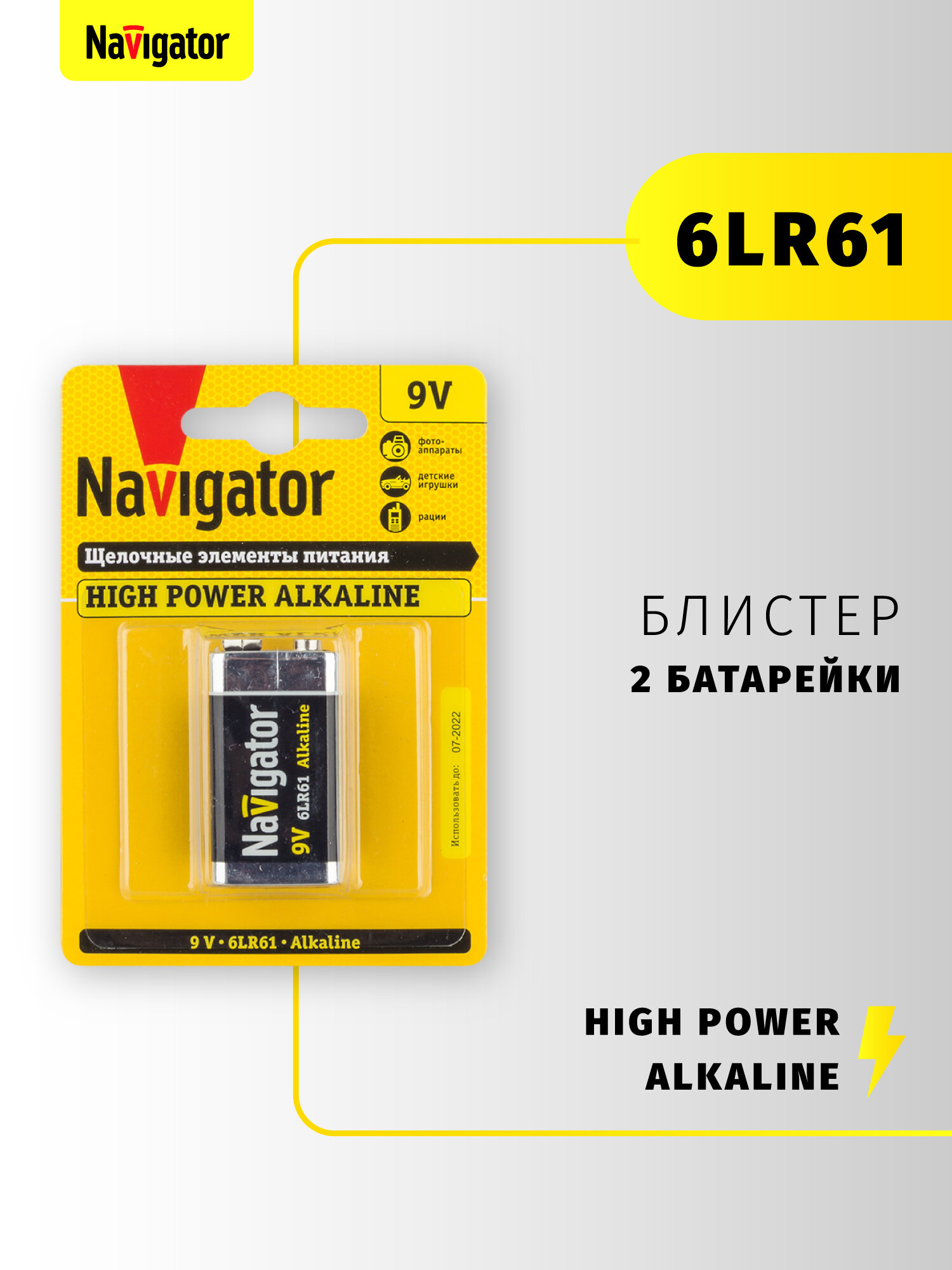 Батарейки щелочные высокой мощности Navigator 9V крона 94 756 NBT-NE-6LR61-BP1, блистер 1 шт. информация: