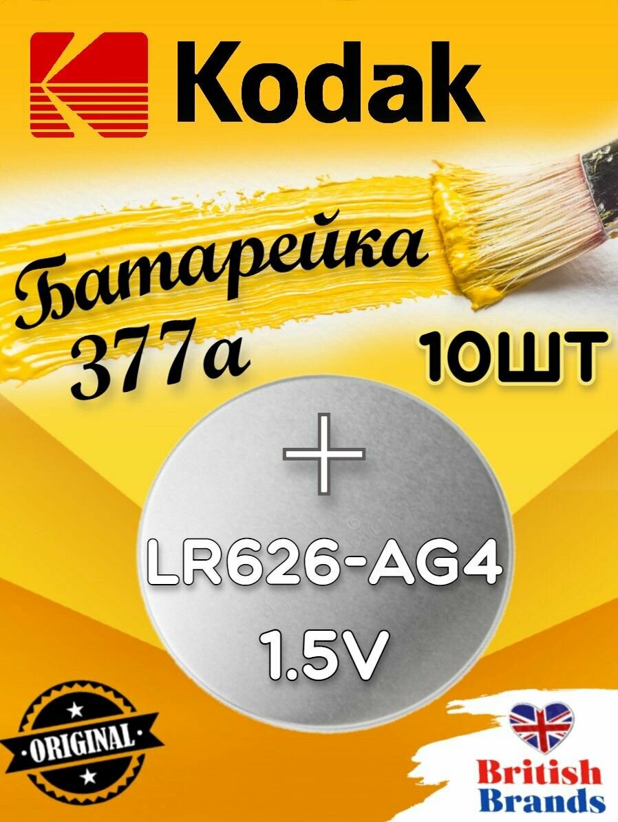 Батарейка Kodak AG04 (377) LR626 BL10 /Элемент питания Kodak AG04 (377) LR626 BL10, 1 шт. 157 ₽