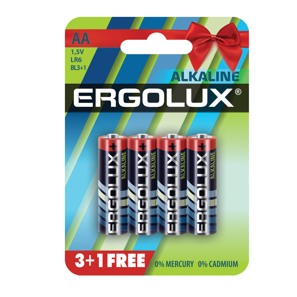 Батарейка Ergolux ALKALINE LR6 BL-4, щелочная, в блистере, 4шт информация:
