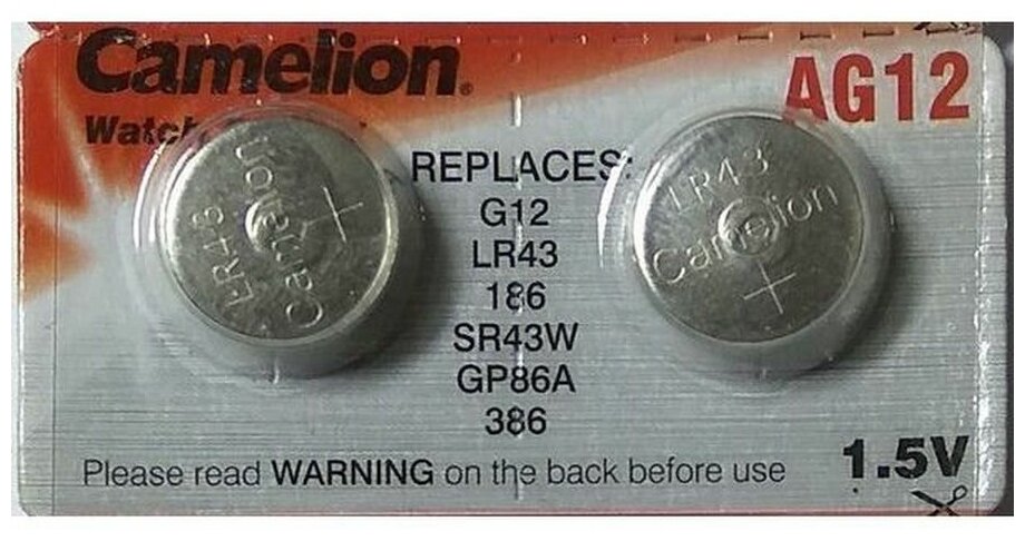 Отзывы на Батарейка Camelion AG12 LR43 LR1142 G12 SR43W 386 1.5V 2 штуки.