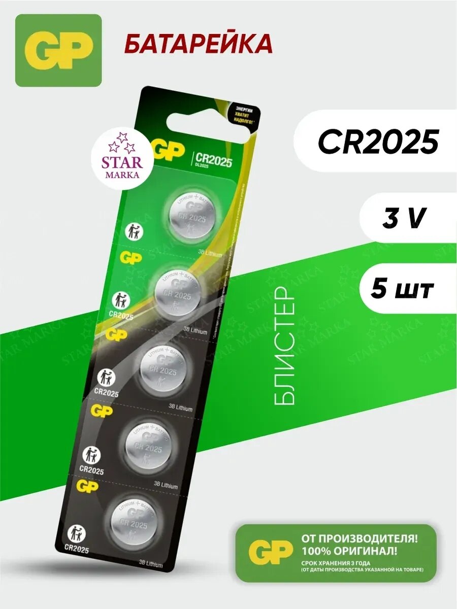 10 цен на Батарейка литиевая GP CR2025, для умных устройств, 3 В, 5 шт