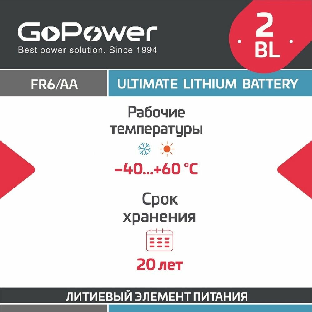 Батарейка GoPower FR6 AA BL2 Lithium 1.5V информация: