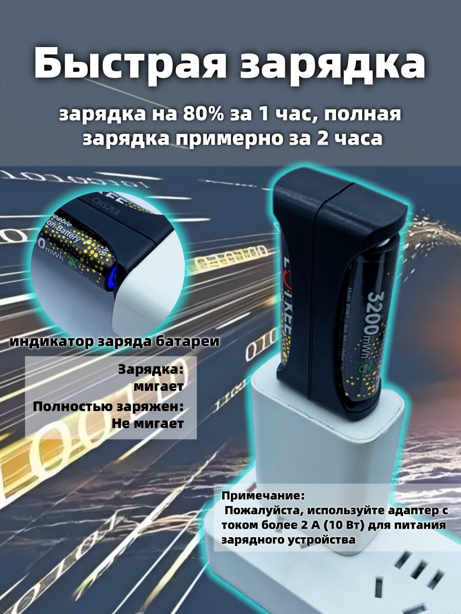 Аккумуляторные Батарейки LOTKEE, 3200mWh, AA, с USB зарядкой, 4шт информация: