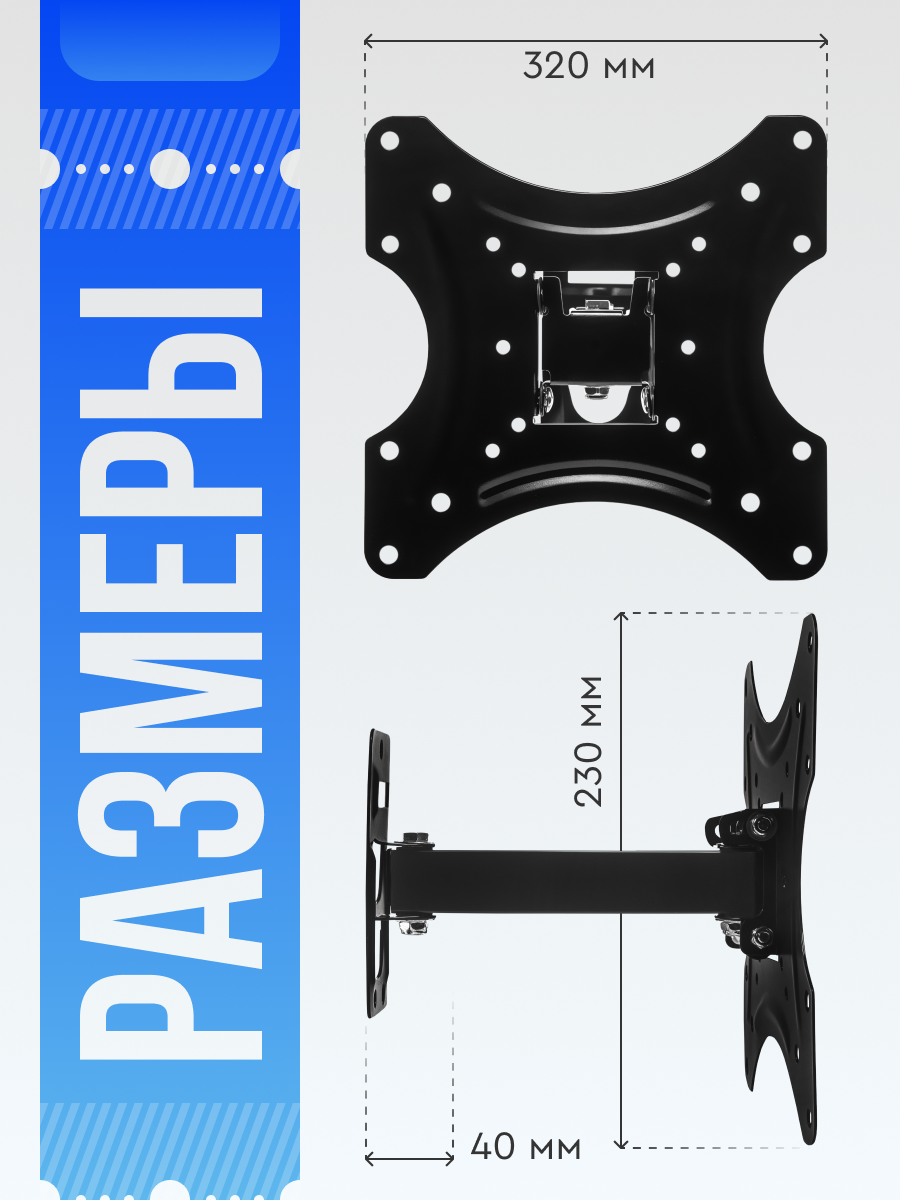 10 цен на Кронштейн для телевизора СТАРТ, до 42", 20 кг, настенный, с коленом, наклонно-поворотный, VESA 75/100/200