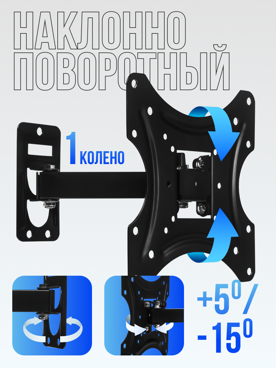 Отзывы на Кронштейн для телевизора СТАРТ, до 42", 20 кг, настенный, с коленом, наклонно-поворотный, VESA 75/100/200