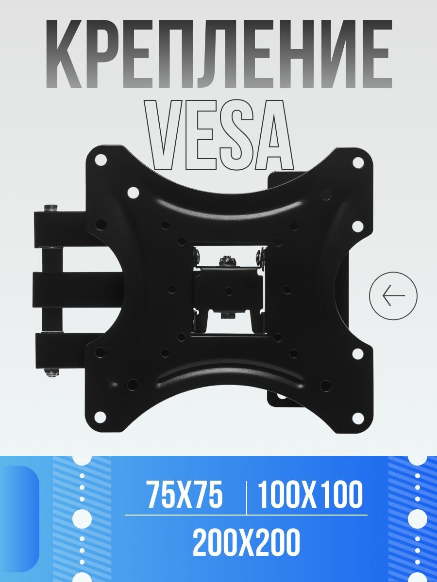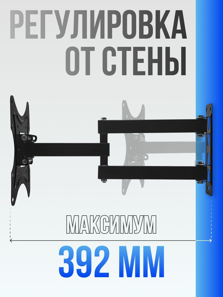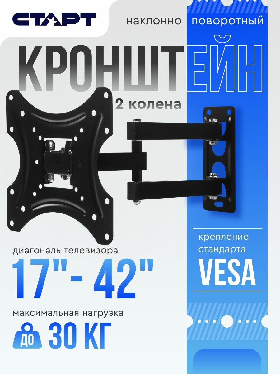 10 цен на Кронштейн для телевизора СТАРТ, до 42", до 30 кг, настенный, с 2 коленами, наклонно-поворотный, VESA 75/100/200