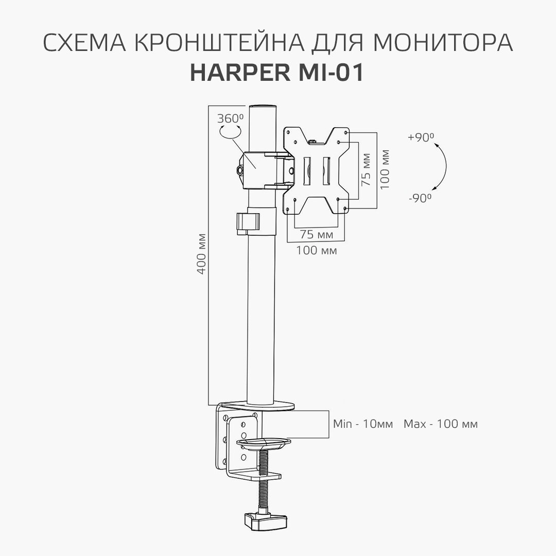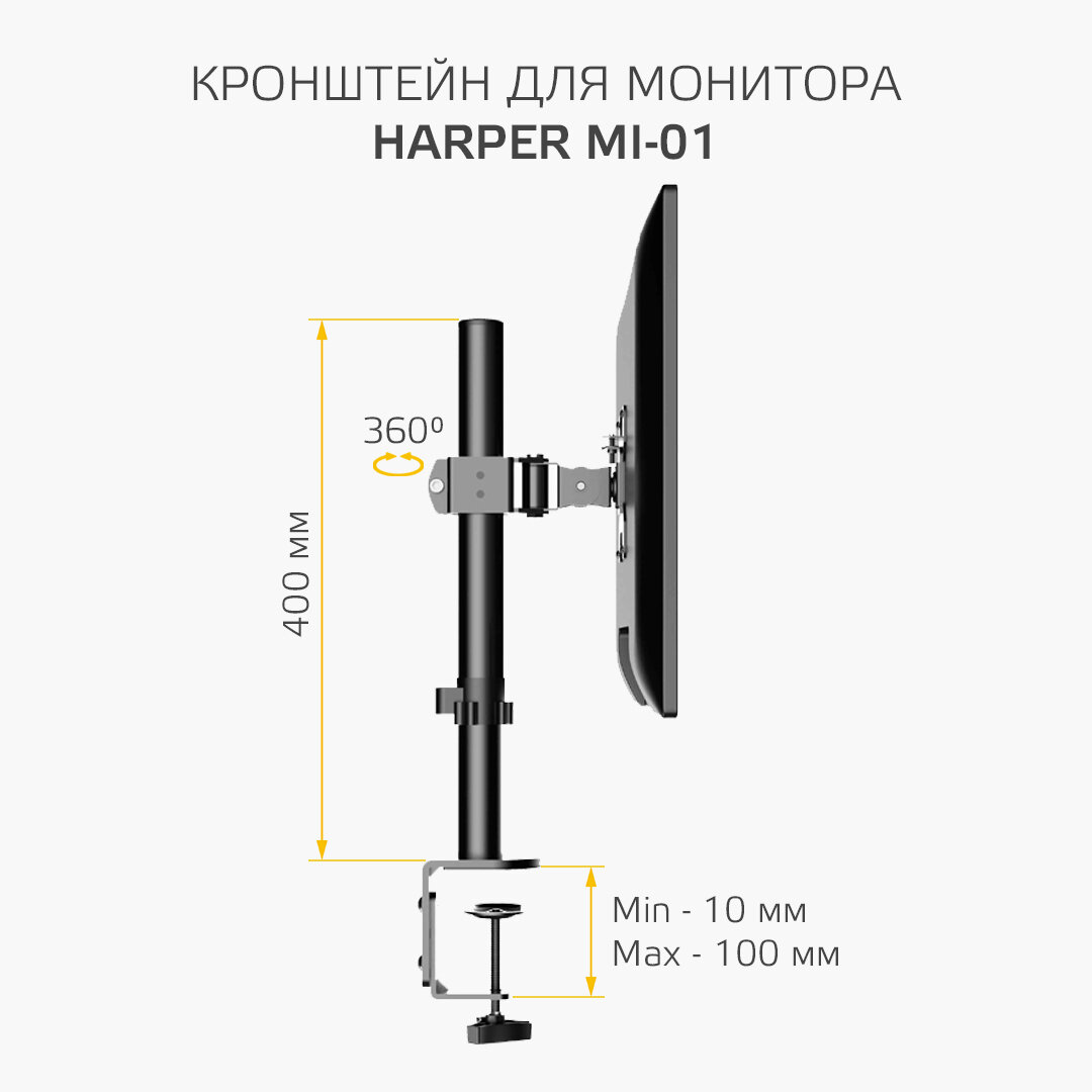 Кронштейн для одного монитора HARPER MI-01, от 13"-32", черный информация: