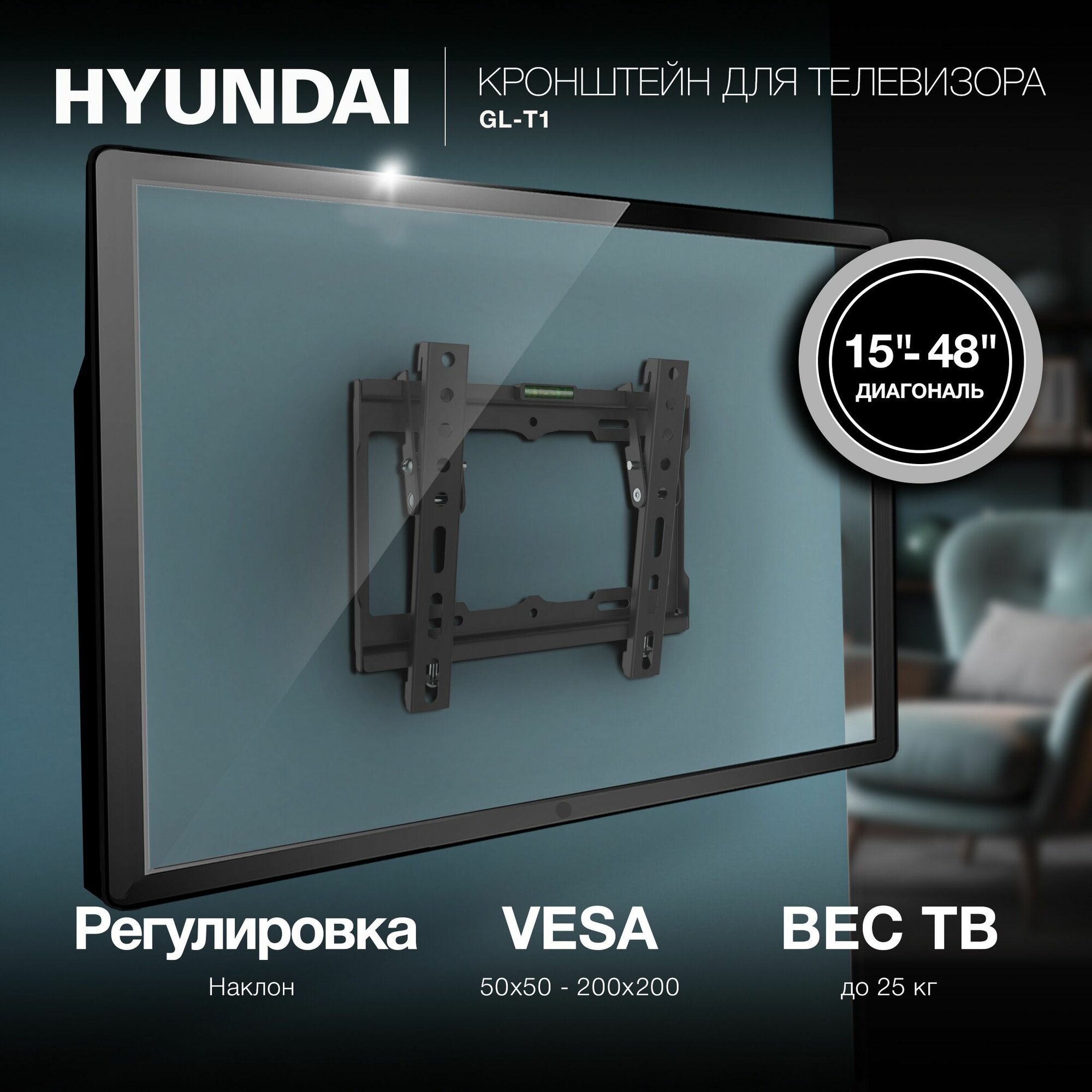 Кронштейн для телевизора настенный наклонный Hyundai GL-T1 черный 15-48 дюймов нагрузка до 25кг информация: