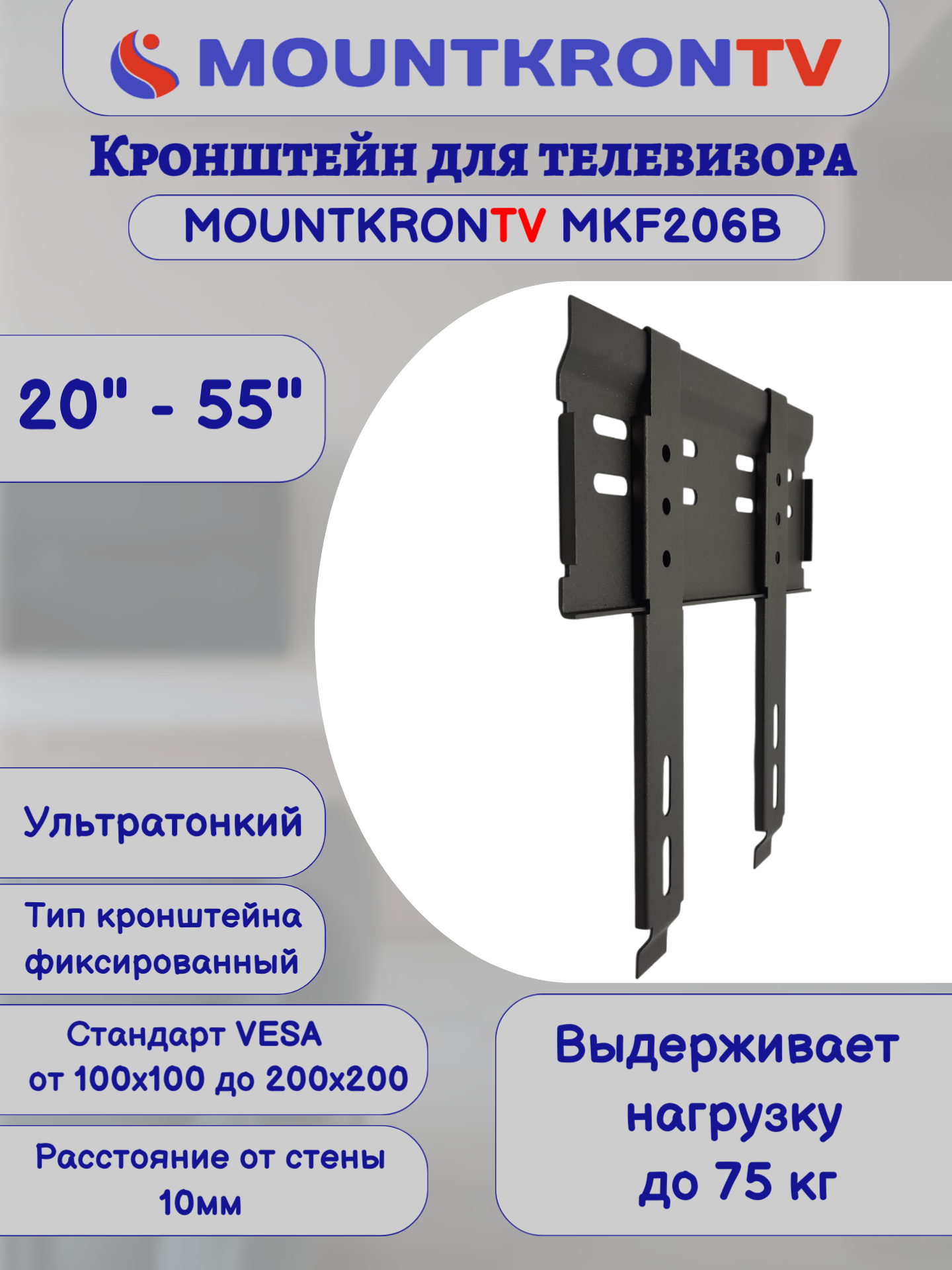 10 цен на Кронштейн для телевизора MOUNTKRONTV MKF206B черный, на стену, фиксированный, диагональ 20"-55"