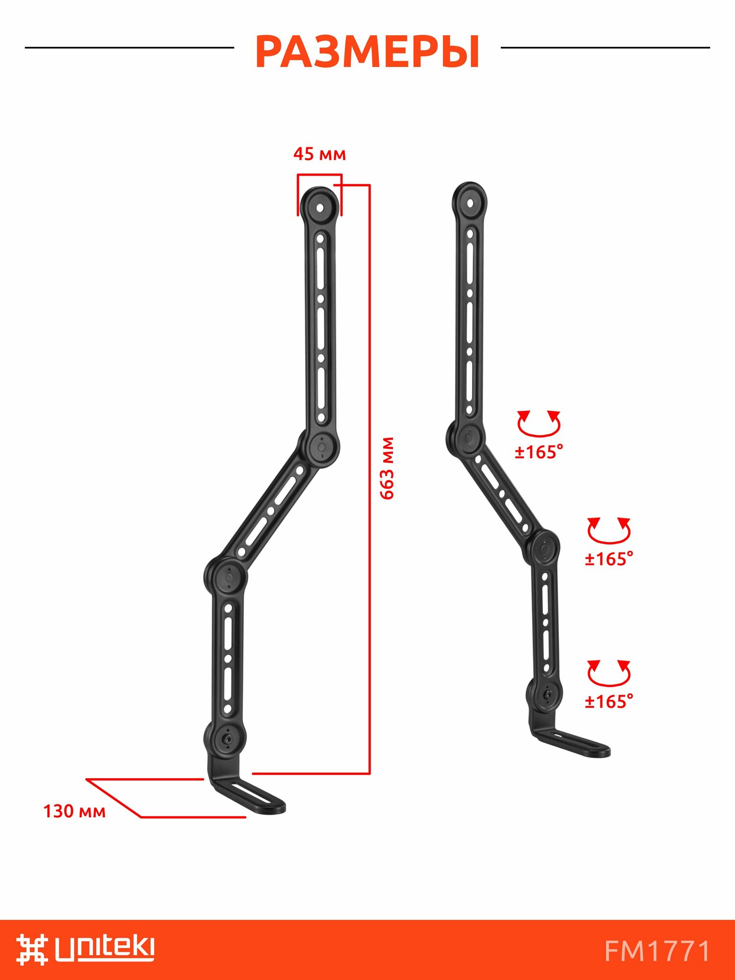 Крепление для саундбара к кронштейну VESA, настенный кронштейн, держатель звуковой панели UNITEKI SMS1670L черный, универсальный, поворотный информация: