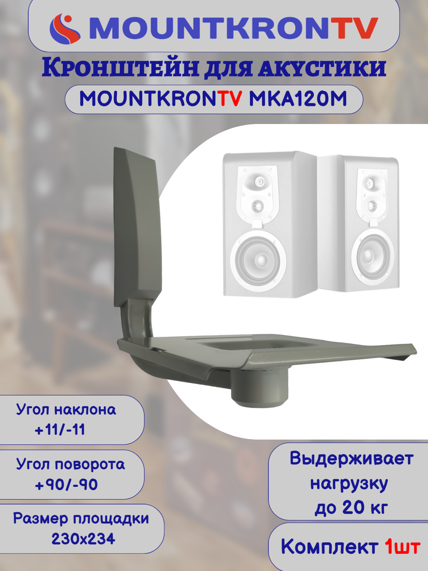 Кронштейн для акустики MOUNTKRONTV MKA120M на стену, наклонно-поворотный, серый металлик информация: