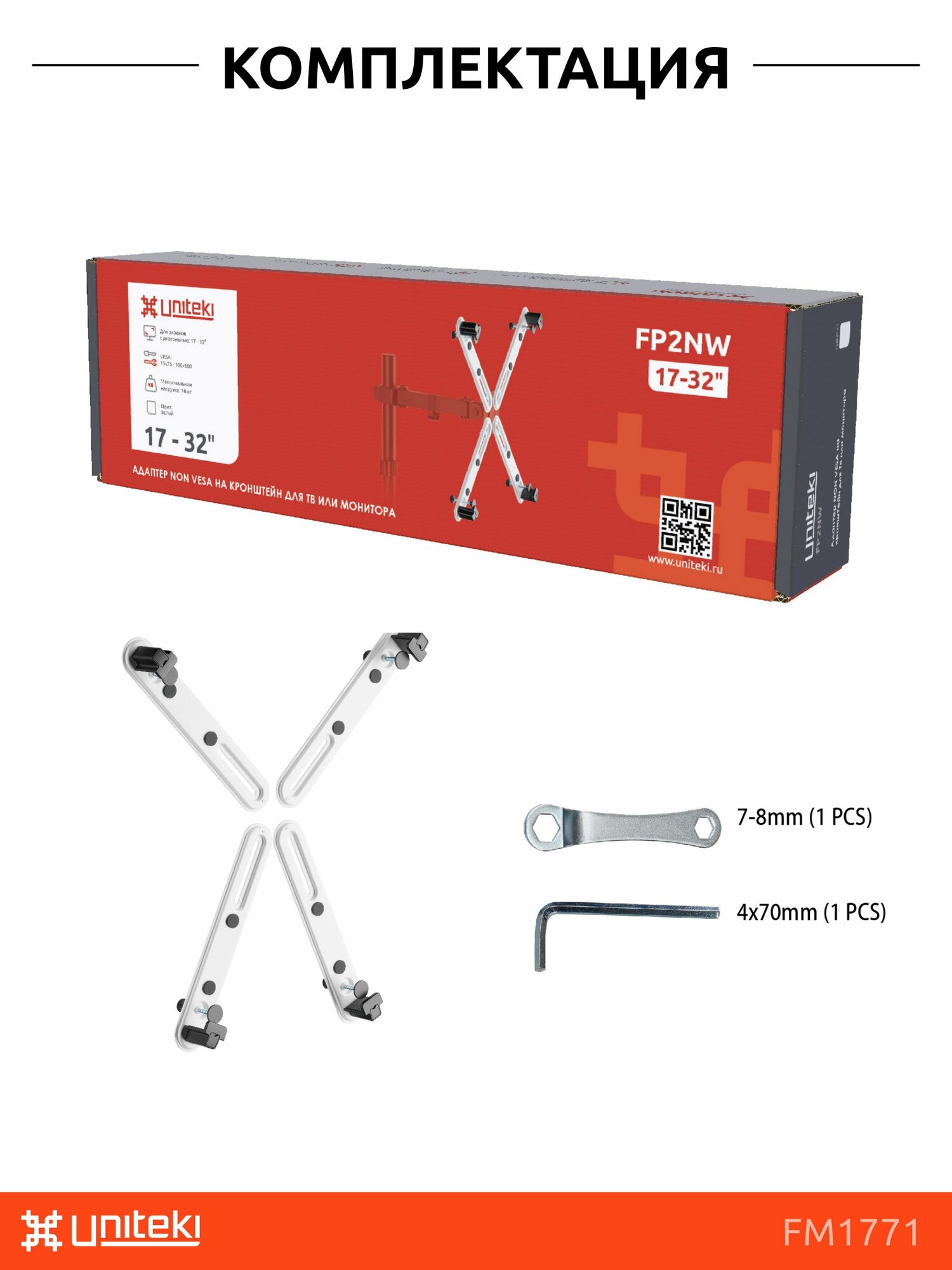 Крепление для монитора, адаптер NO VESA, NON VESA, UNITEKI FP2NW белый, диагональ 17-32 дюймов, без отверстий в тыльной части телевизора или монитора информация: