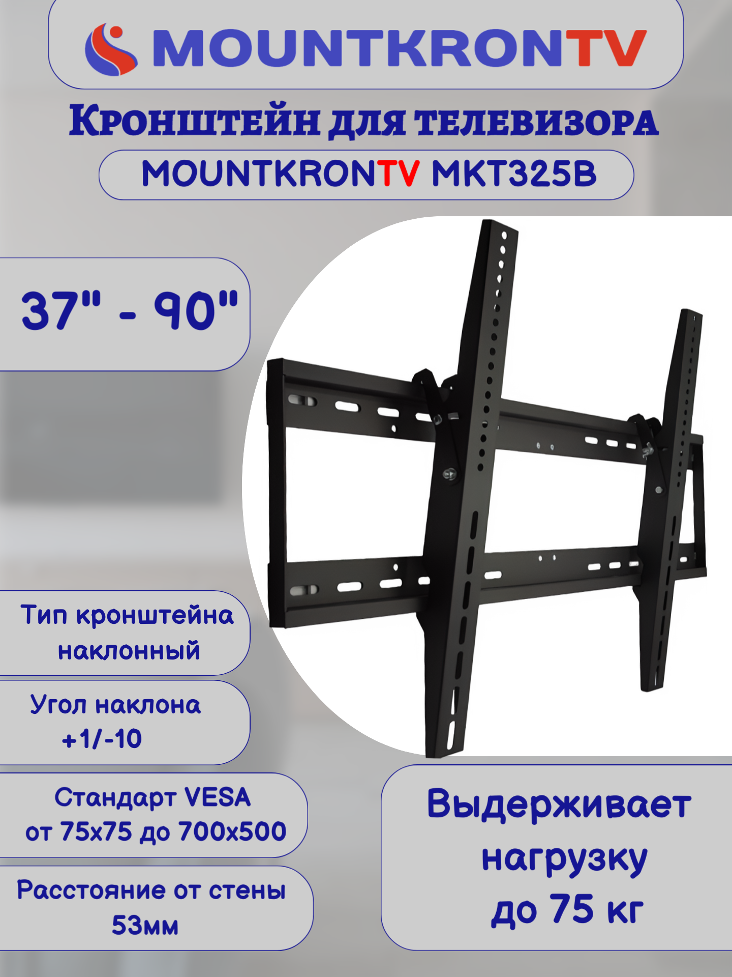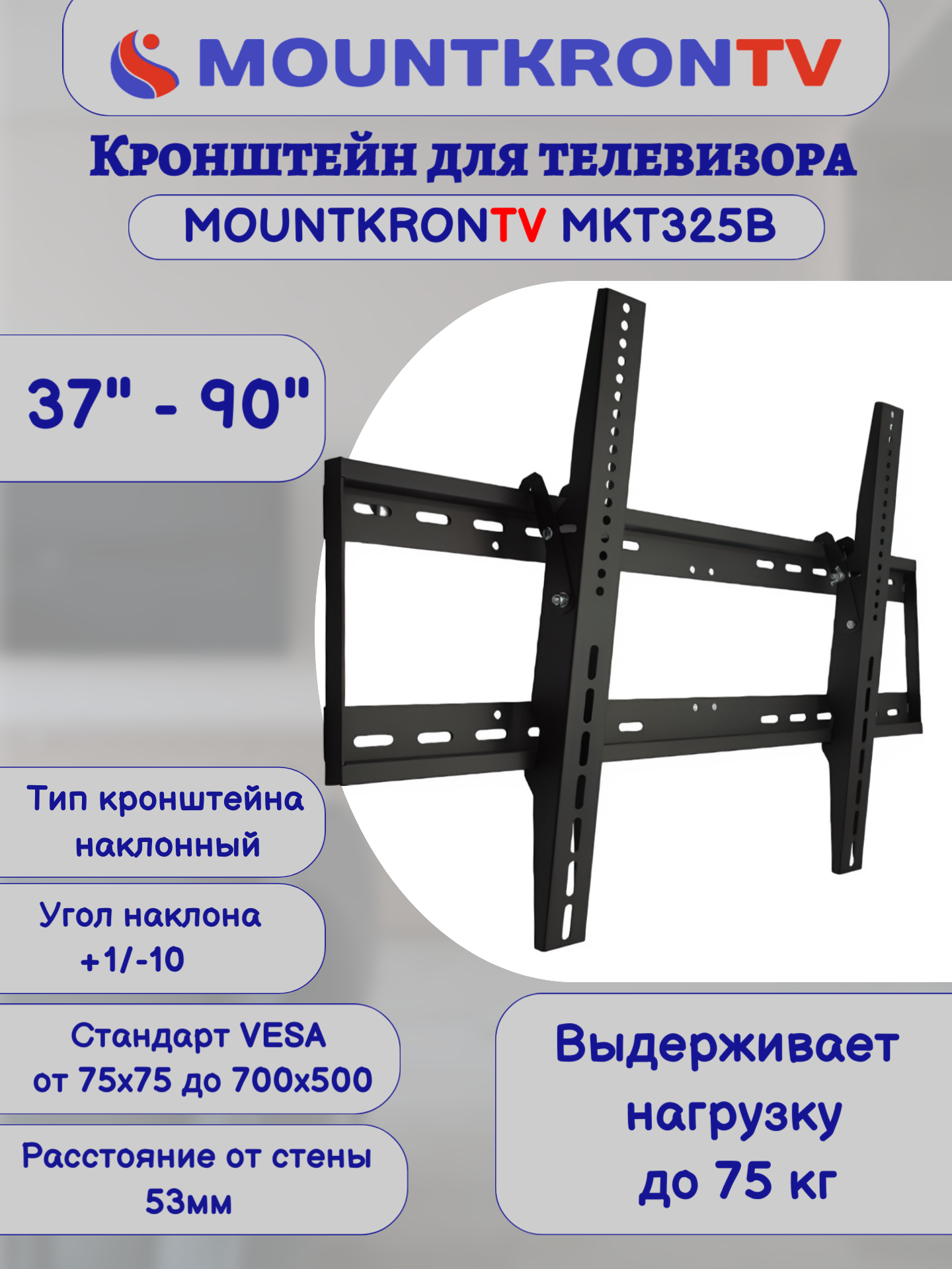 10 цен на Кронштейн для телевизора MOUNTKRONTV MKT325B на стену, наклонный, диагональ 37"-90", черный