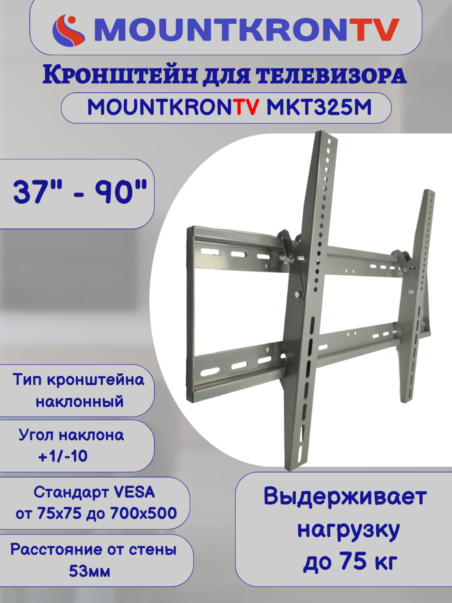 10 цен на Кронштейн для телевизора MOUNTKRONTV MKT325M на стену, наклонный, диагональ 37"-90", серый металлик