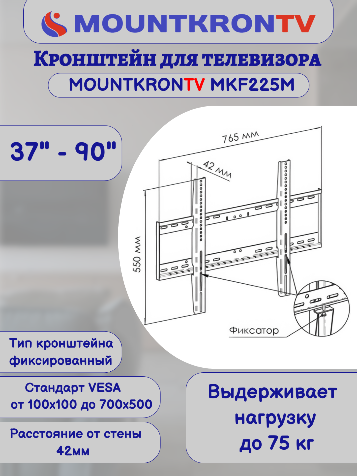 Отзывы на Кронштейн для телевизора MOUNTKRONTV MKF225M серый металлик, на стену, фиксированный, диагональ 37"-90"