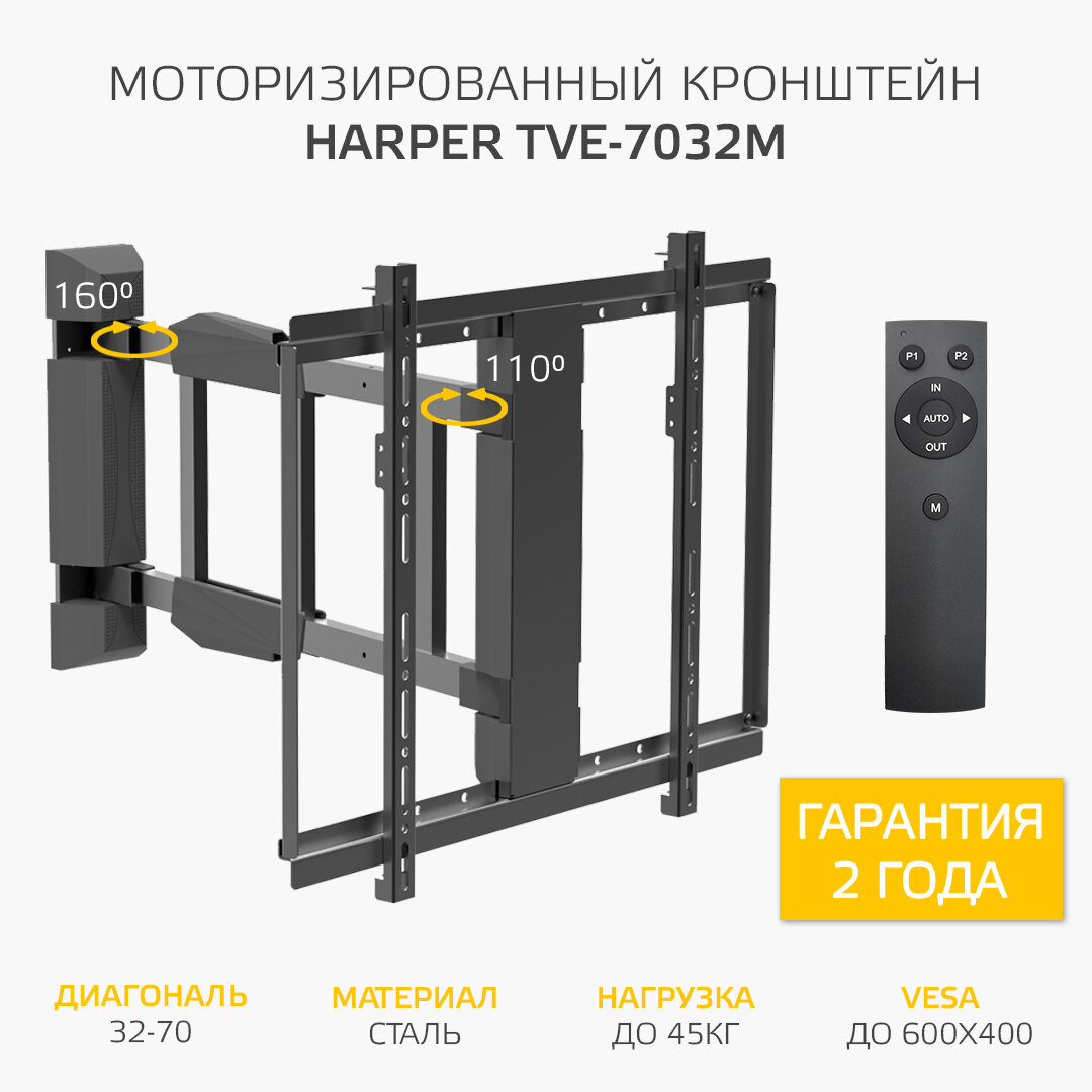 Отзывы на Моторизированный поворотный кронштейн для телевизора HARPER TVE-7032M, с пультом ДУ, черный