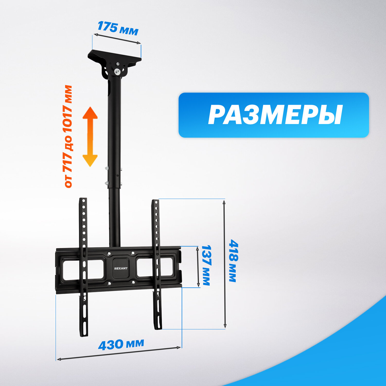 Кронштейн поворотный потолочный REXANT крепление для телевизора 32-60 информация: