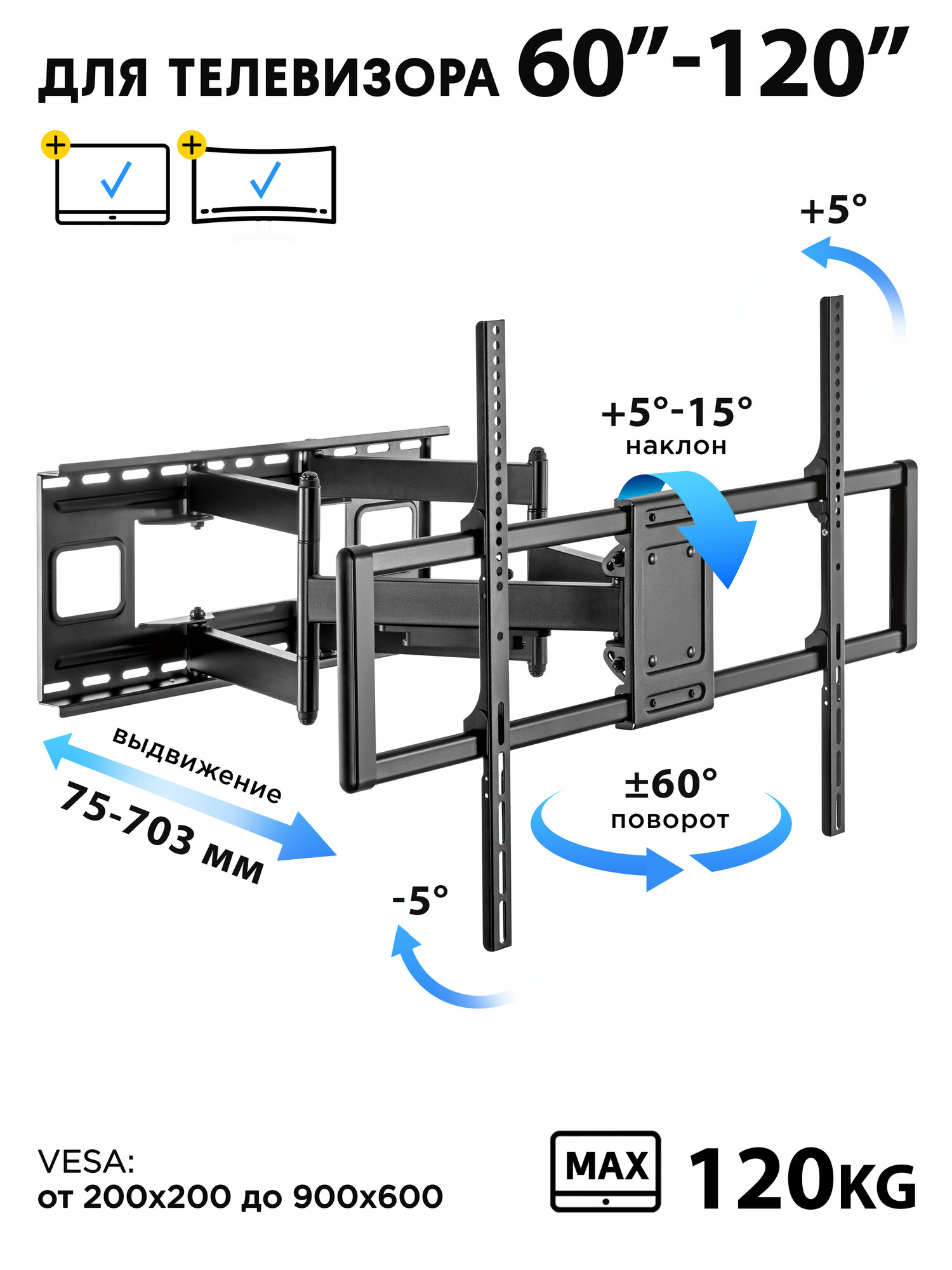 Отзывы на Кронштейн для телевизора на стену поворотный Godoo 60”-120” дюймов GD77-696