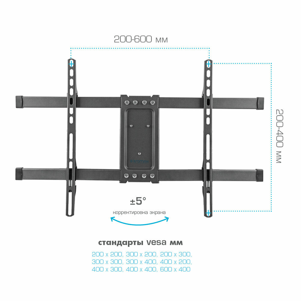 Отзывы на Кронштейн для телевизора настенный наклонно-поворотный KROMAX CORBEL-8, до 75 дюймов, vesa 600x400