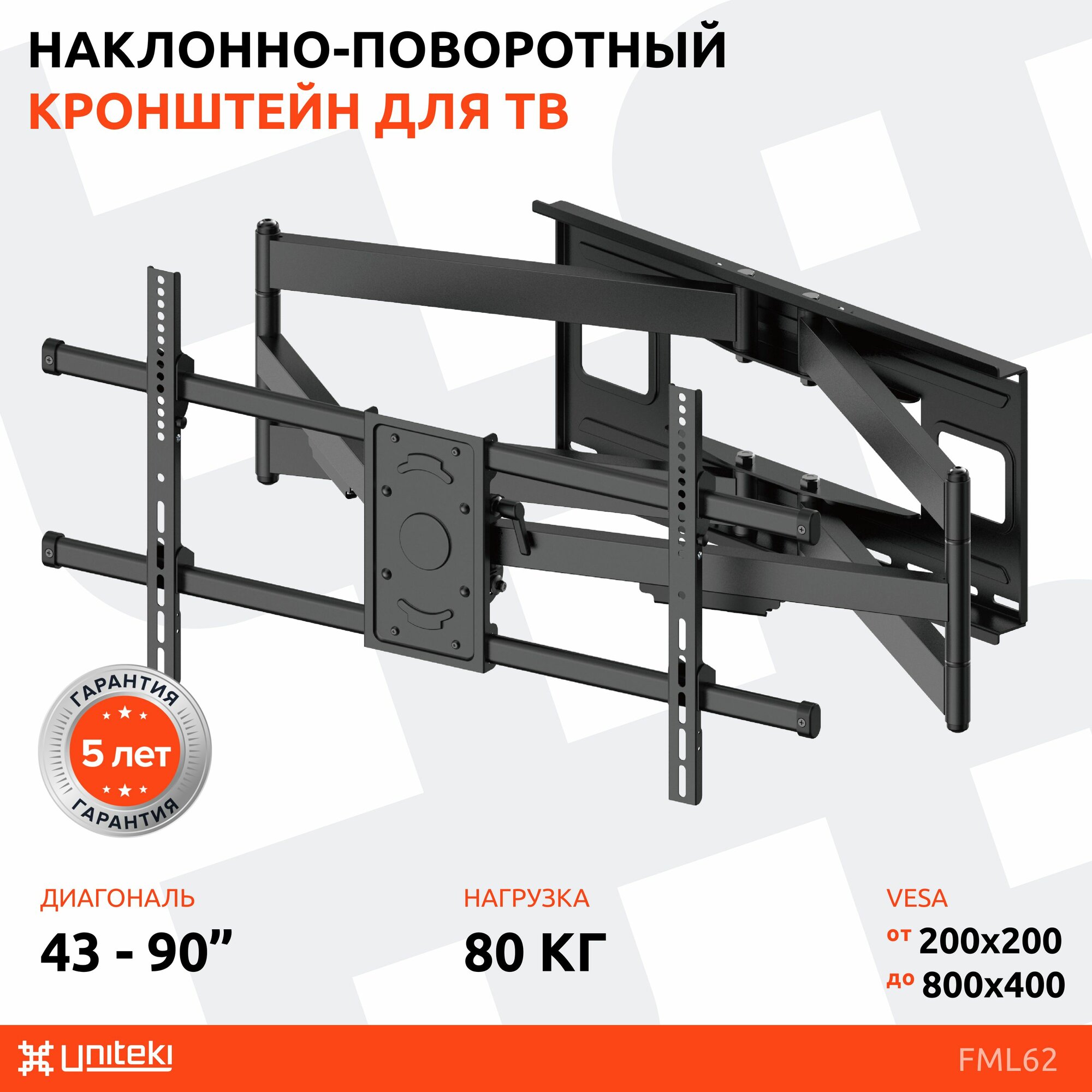 Кронштейн для телевизора наклонно поворотный с большим вылетом на стену UNITEKI FML62 черный диагональ 43-90 дюймов информация: