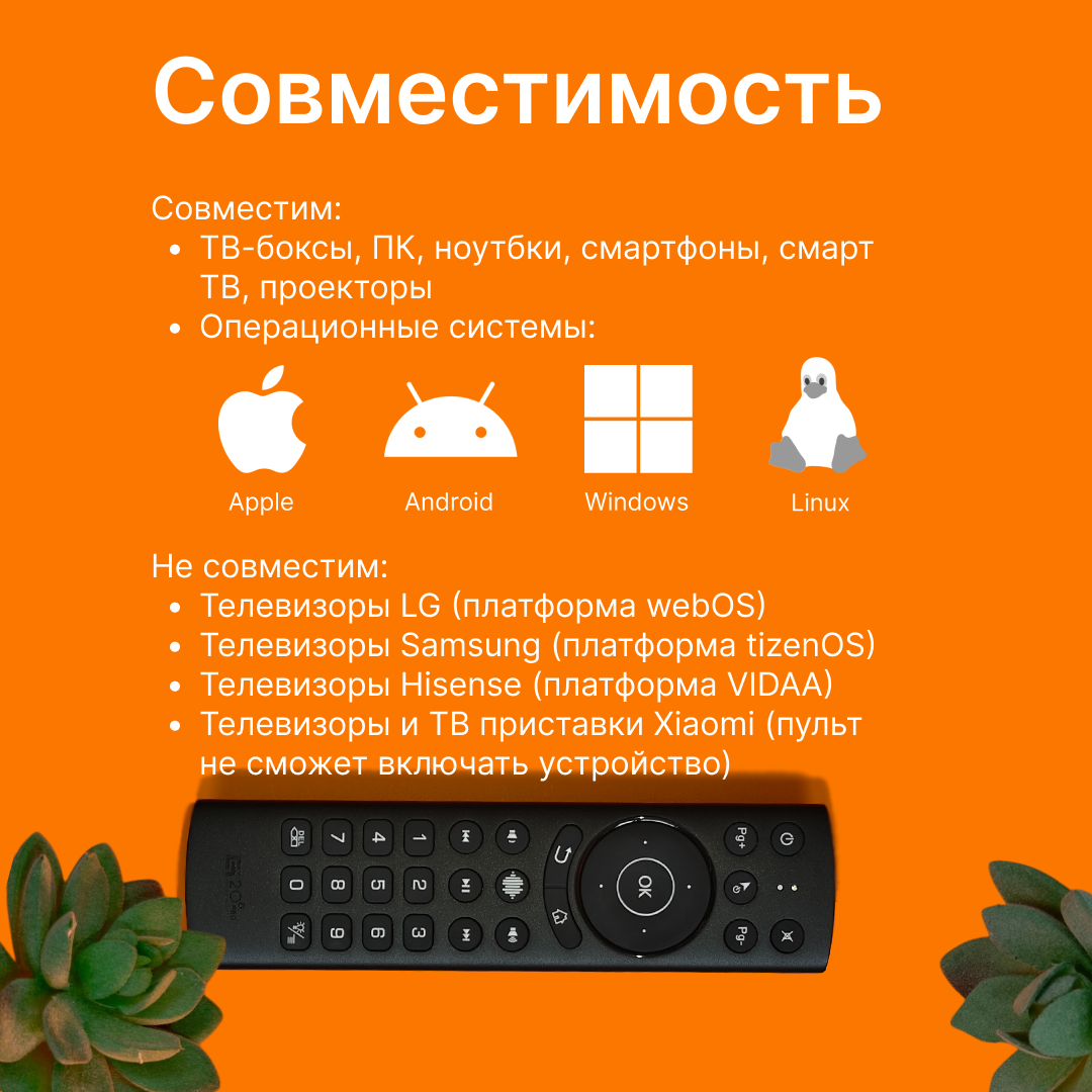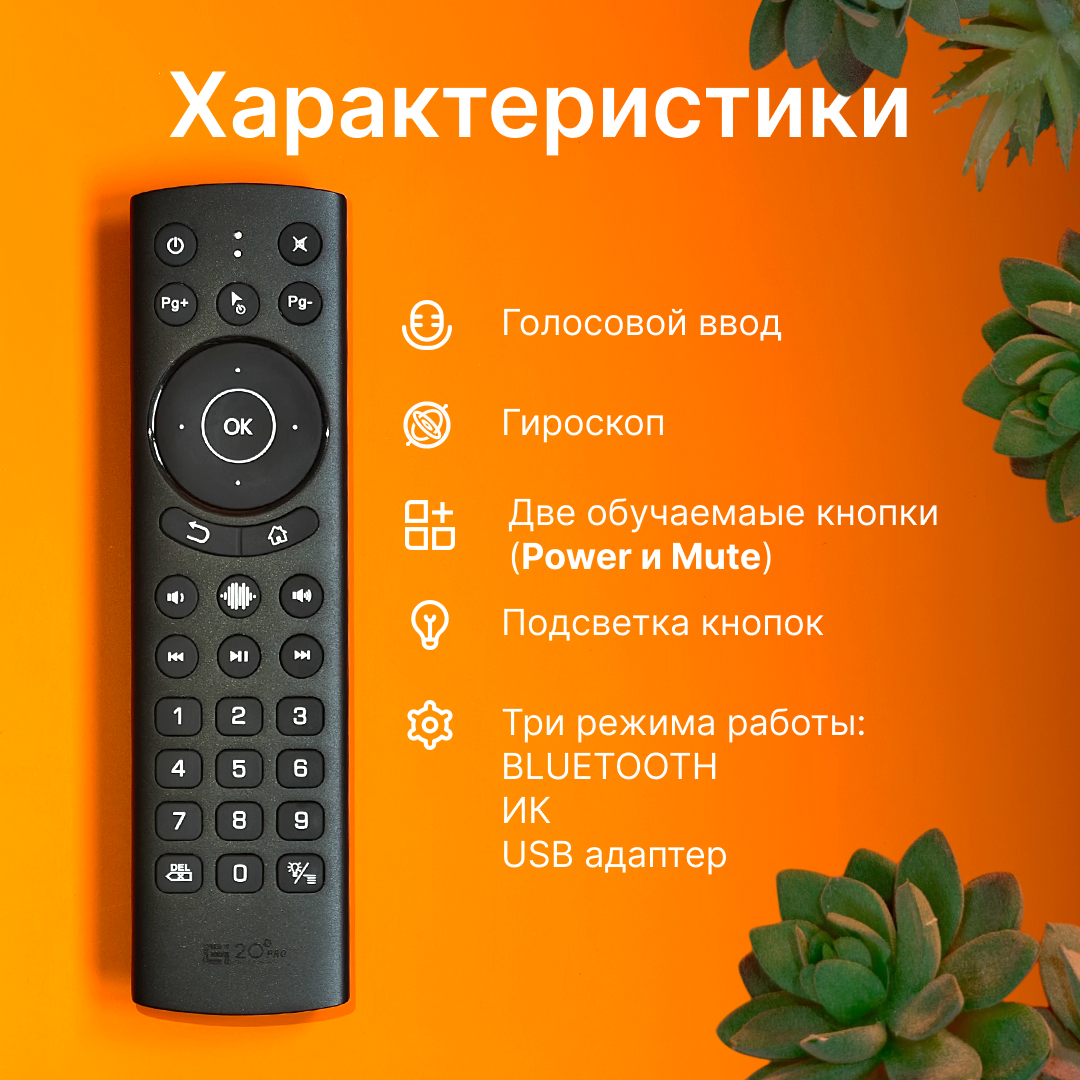 Универсальный пульт-аэромышь G20S PRO BT / Микрофон Гироскоп Bluetooth Подстветка Обучение / Для телевизора, ТВ-приставки, ПК информация: